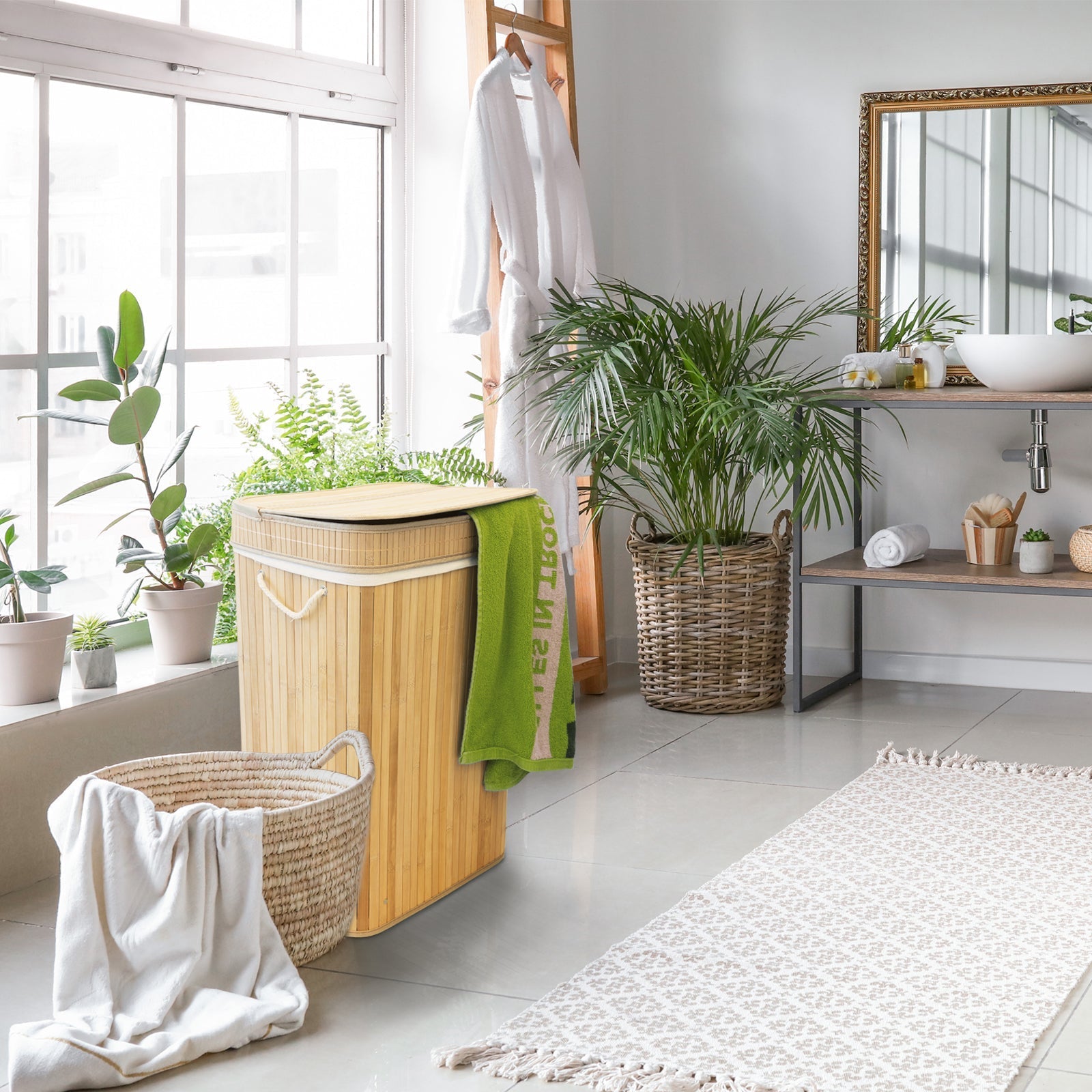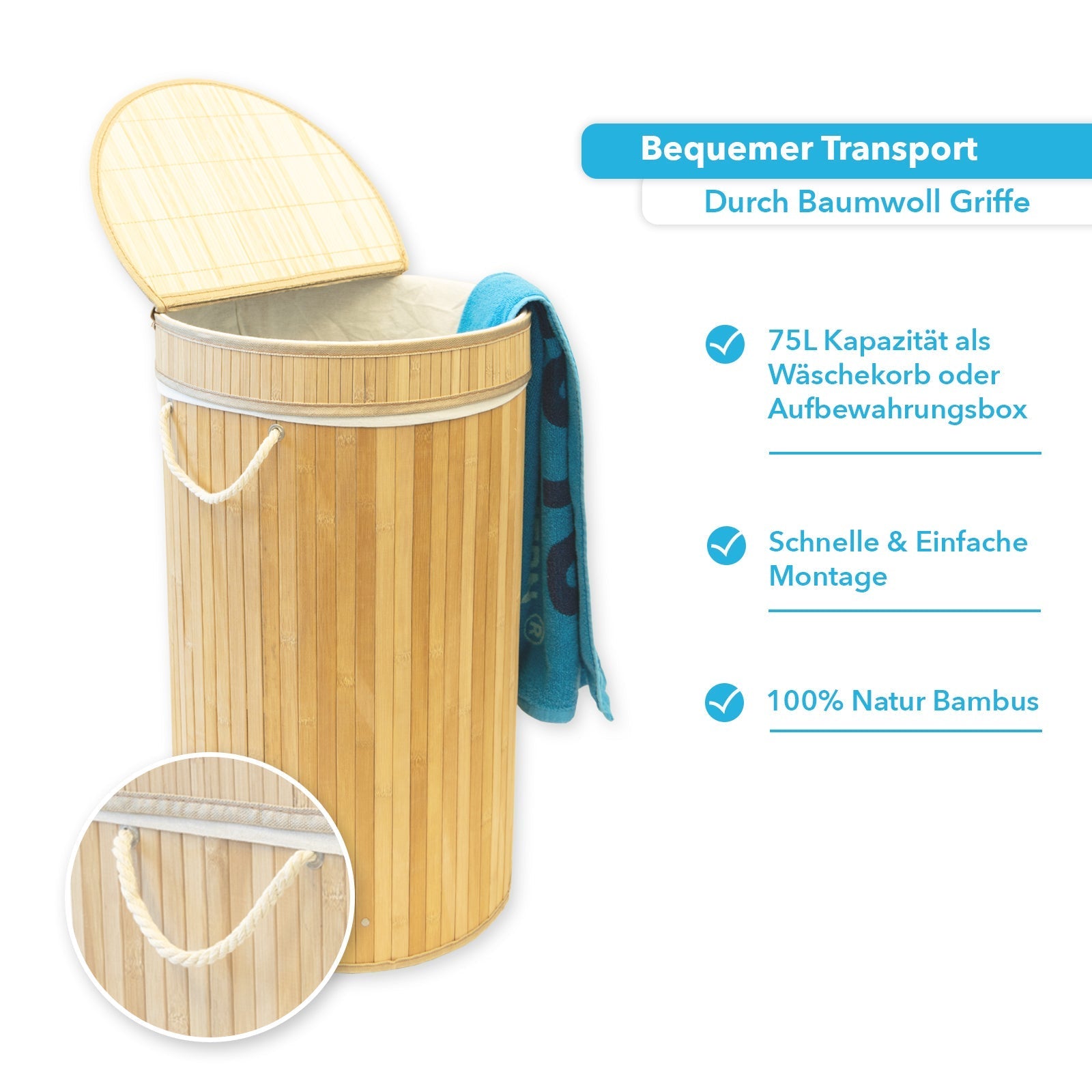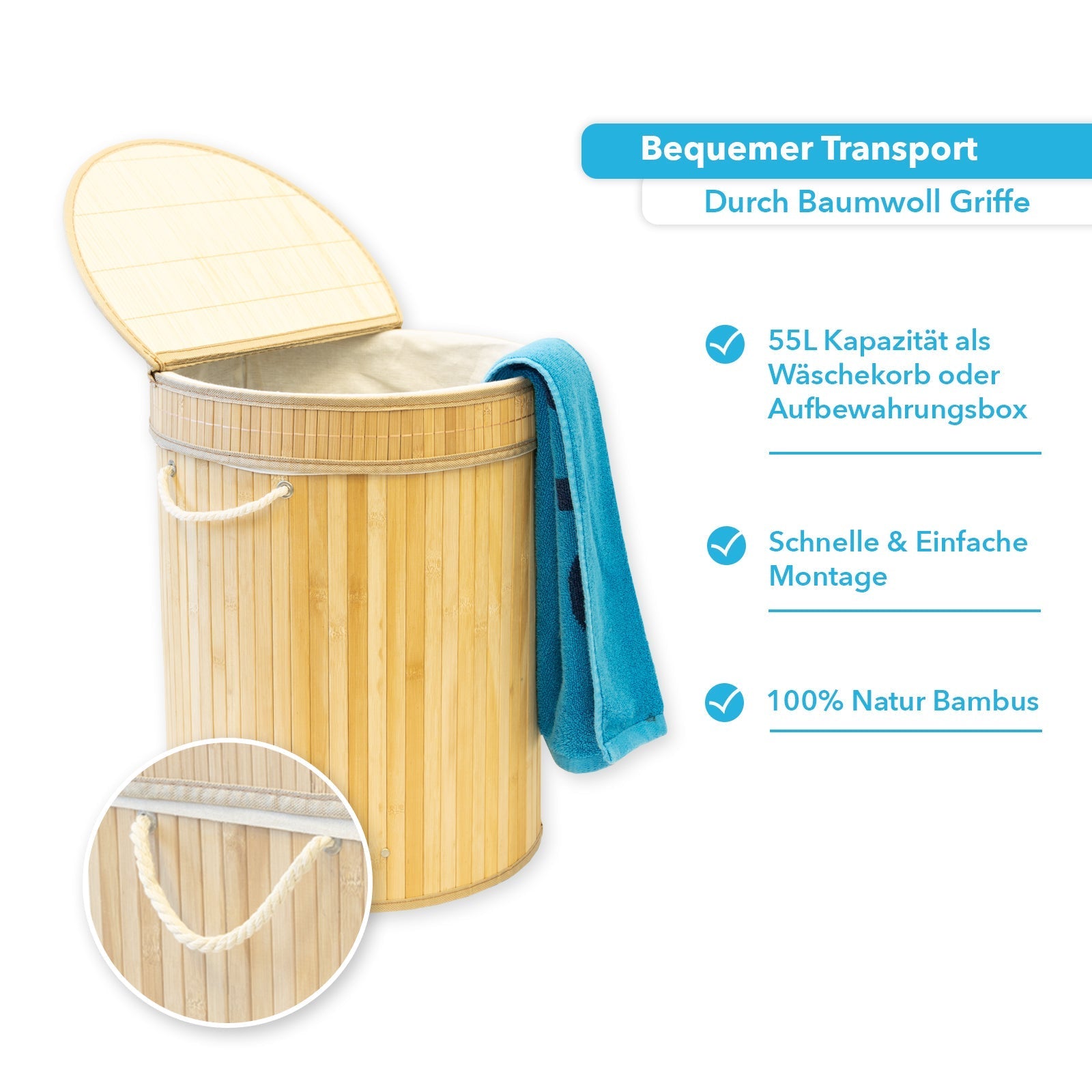 Unser Bambus-Wäschekorb ist nicht nur ein wahrer Blickfang, sondern er sorgt auch für Ordnung im Bade, Schlaf- und Kinderzimmer. Gefertigt sind unsere Körbe aus Bambus und passen durch die naturbelassene Farbe perfekt in Ihr Zuhause. Der Bambus verleiht den Körben zusätzlich Stabilität und macht sie besonders belastbar im Alltag. Unsere Körbe sind in zwei Formen und sechs verschiedenen Grössen erhältlich.