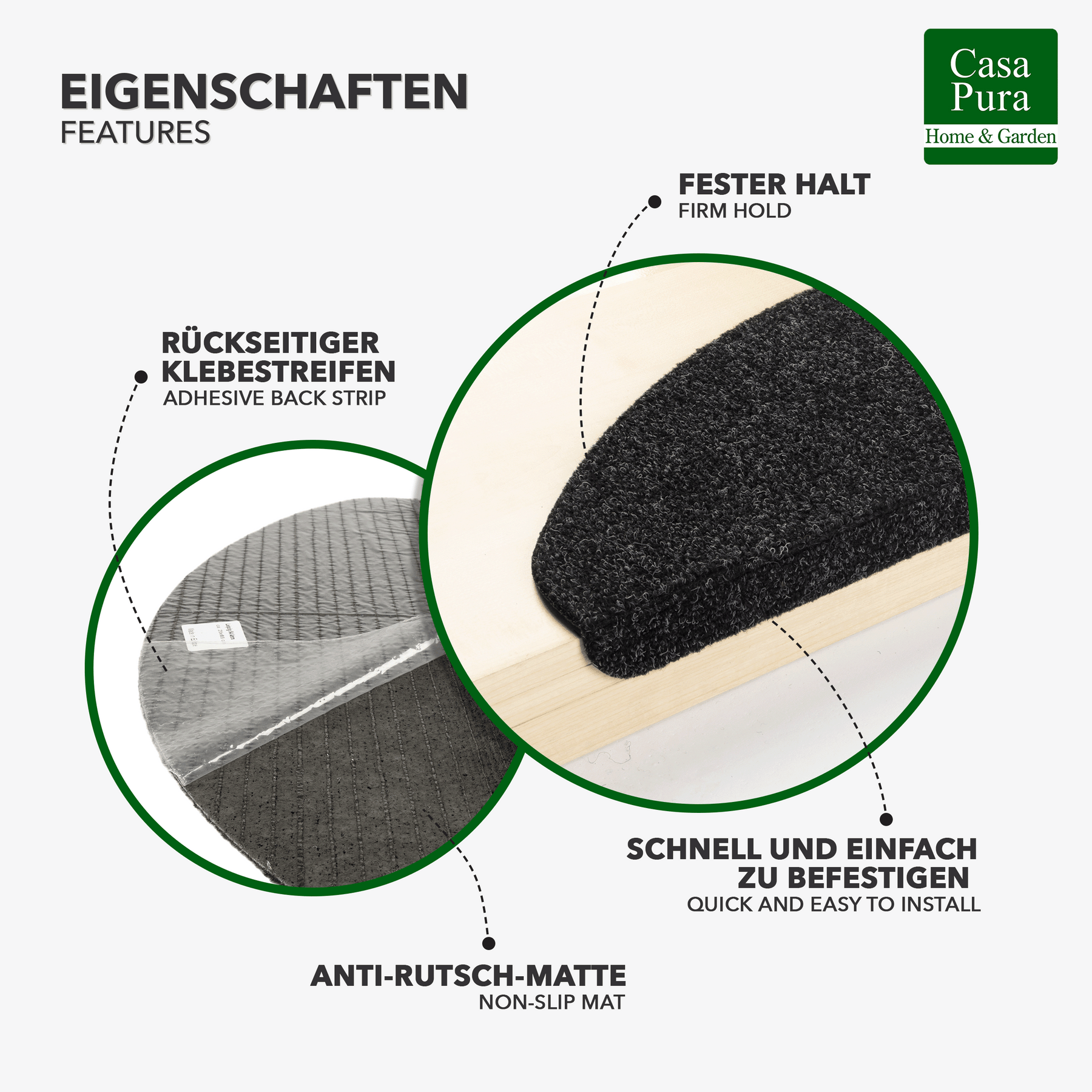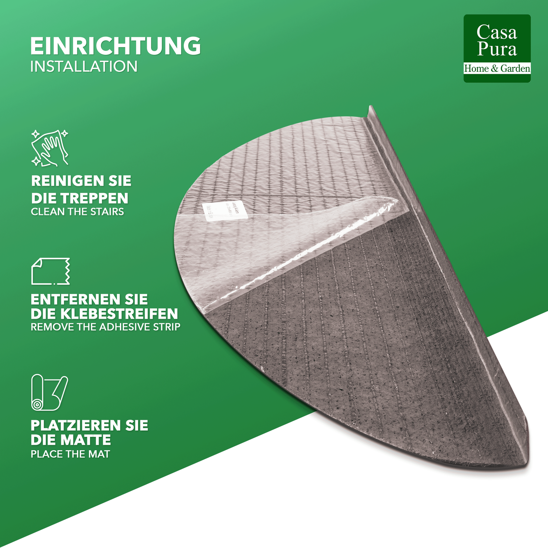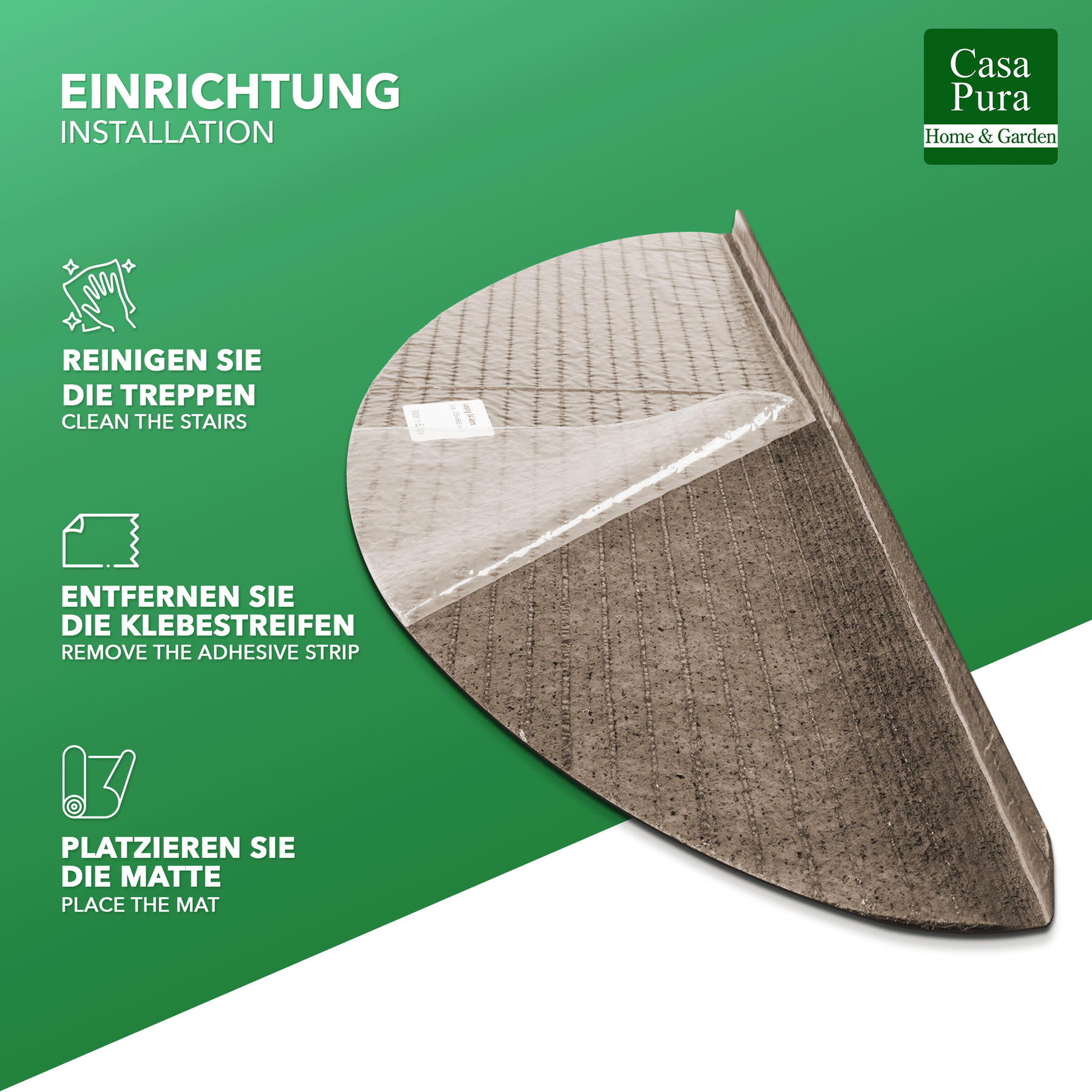 Die einzelnen Textilfasern der preiswerten Stufenmatten sind fest mit dem Matten-Rücken verbunden, der mit einer rutschfesten Kunststoffbeschichtung versehen ist. Gleichzeitig gehören spezielle Klebestreifen mit zur Ausstattung, sodass die einzelnen Stufenmatten schnell und sicher befestigt werden können. Auf diese Weise gehören Rutsch-, Stolper- oder Sturzunfälle der Vergangenheit an.