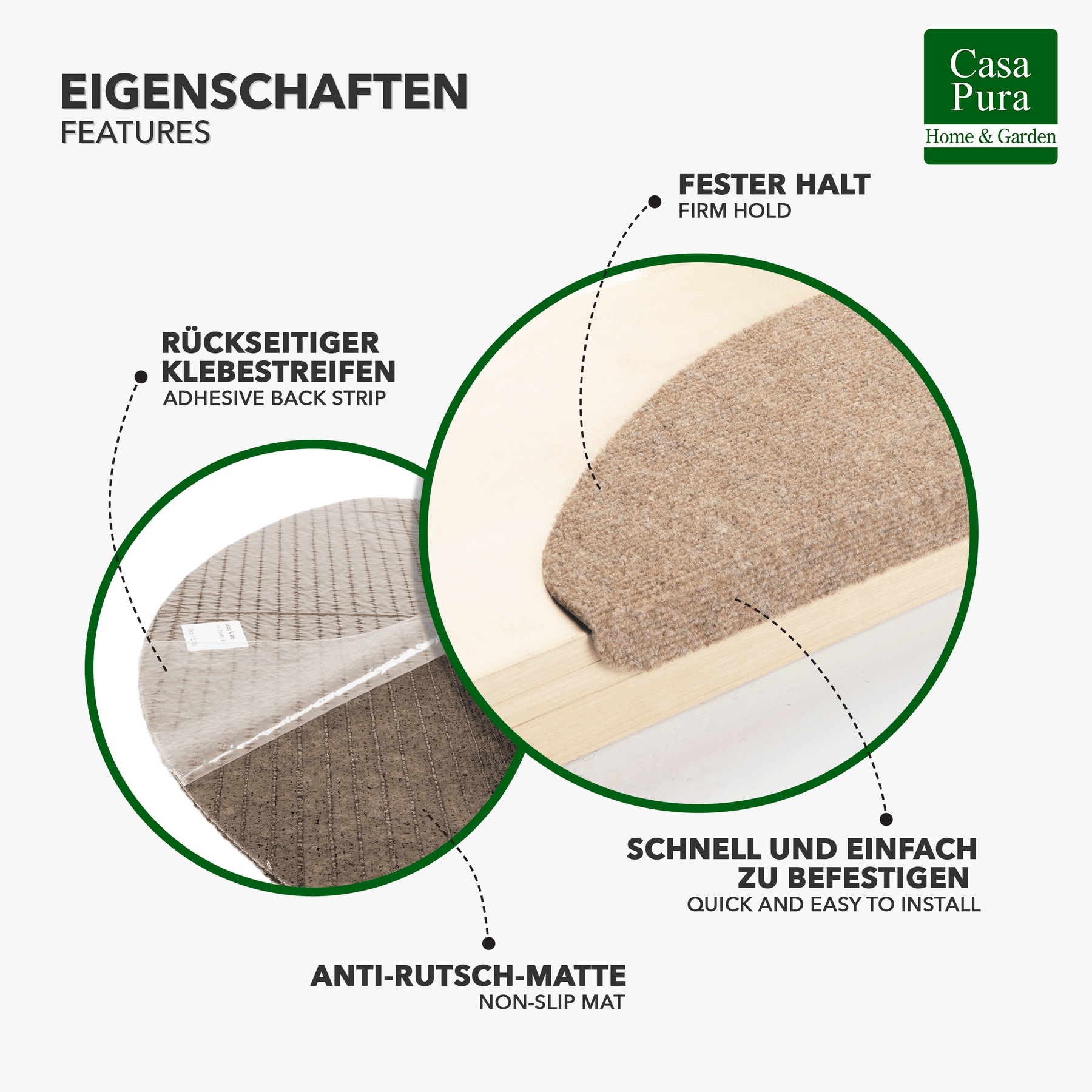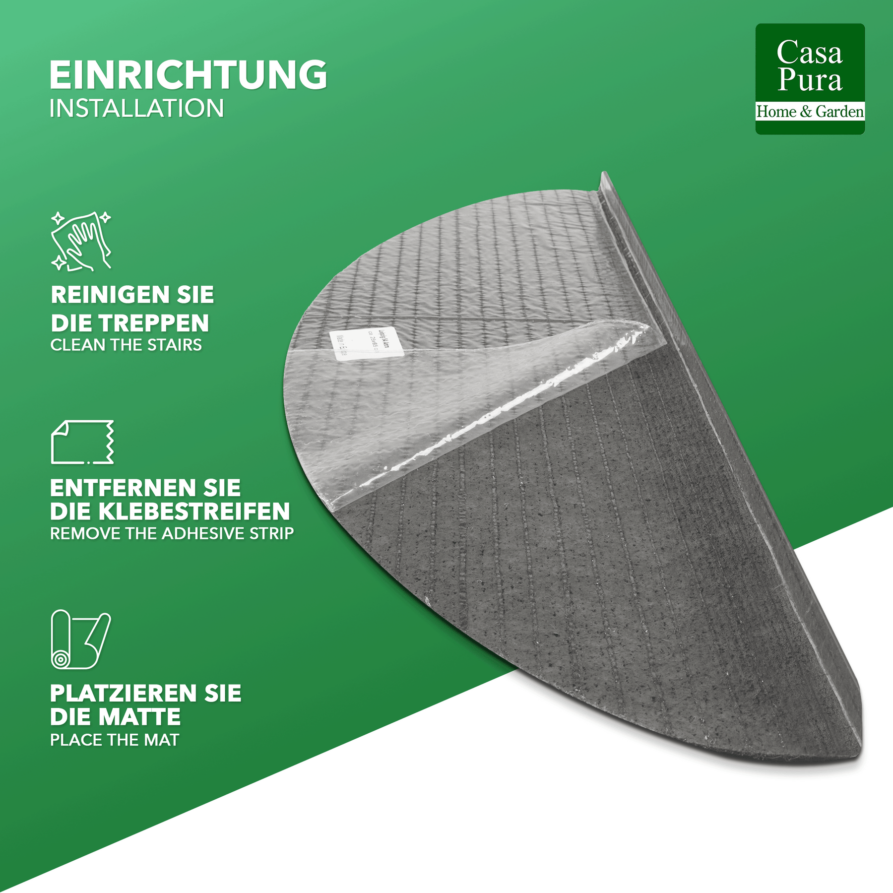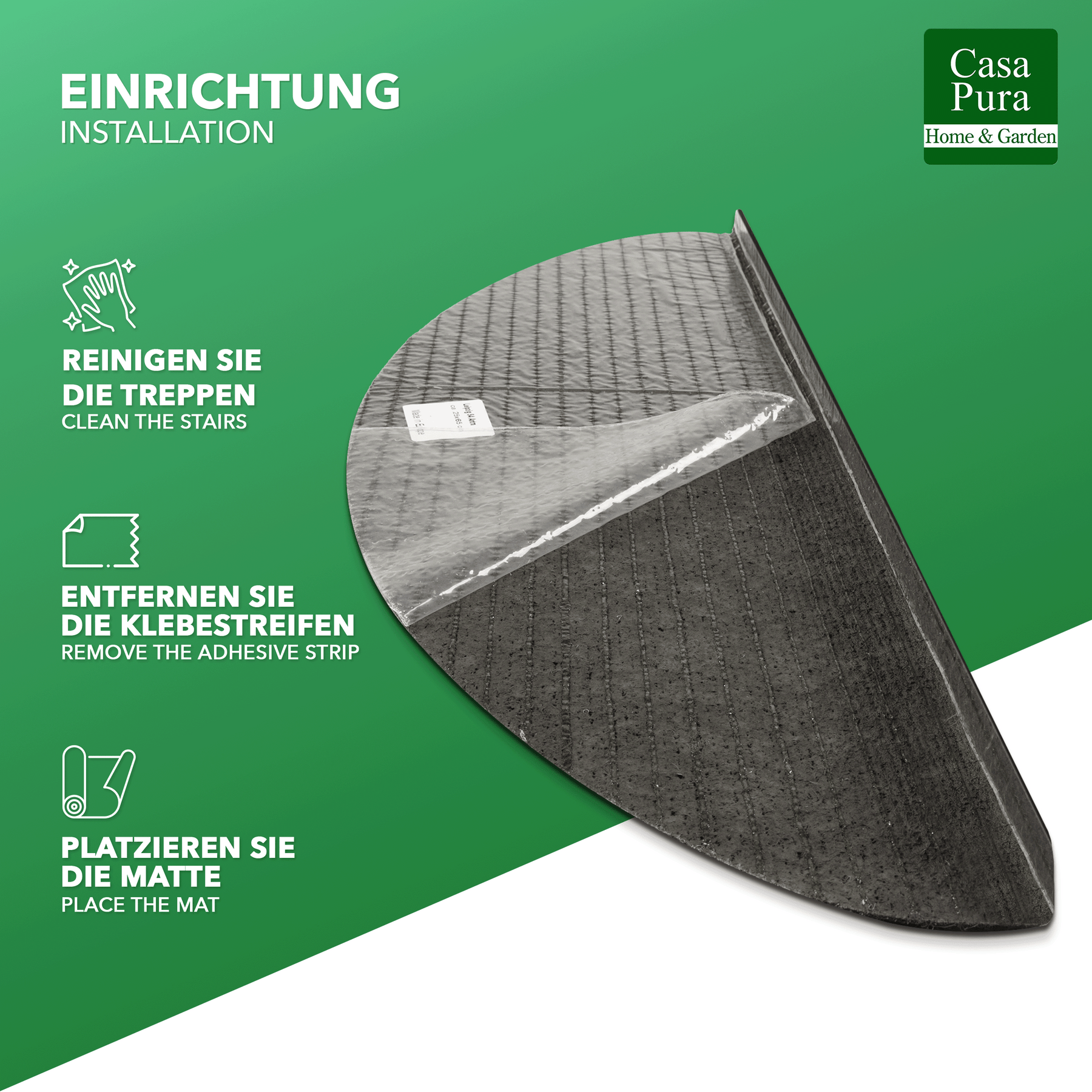 Die einzelnen Textilfasern der preiswerten Stufenmatten sind fest mit dem Matten-Rücken verbunden, der mit einer rutschfesten Kunststoffbeschichtung versehen ist. Gleichzeitig gehören spezielle Klebestreifen mit zur Ausstattung, sodass die einzelnen Stufenmatten schnell und sicher befestigt werden können. Auf diese Weise gehören Rutsch-, Stolper- oder Sturzunfälle der Vergangenheit an.