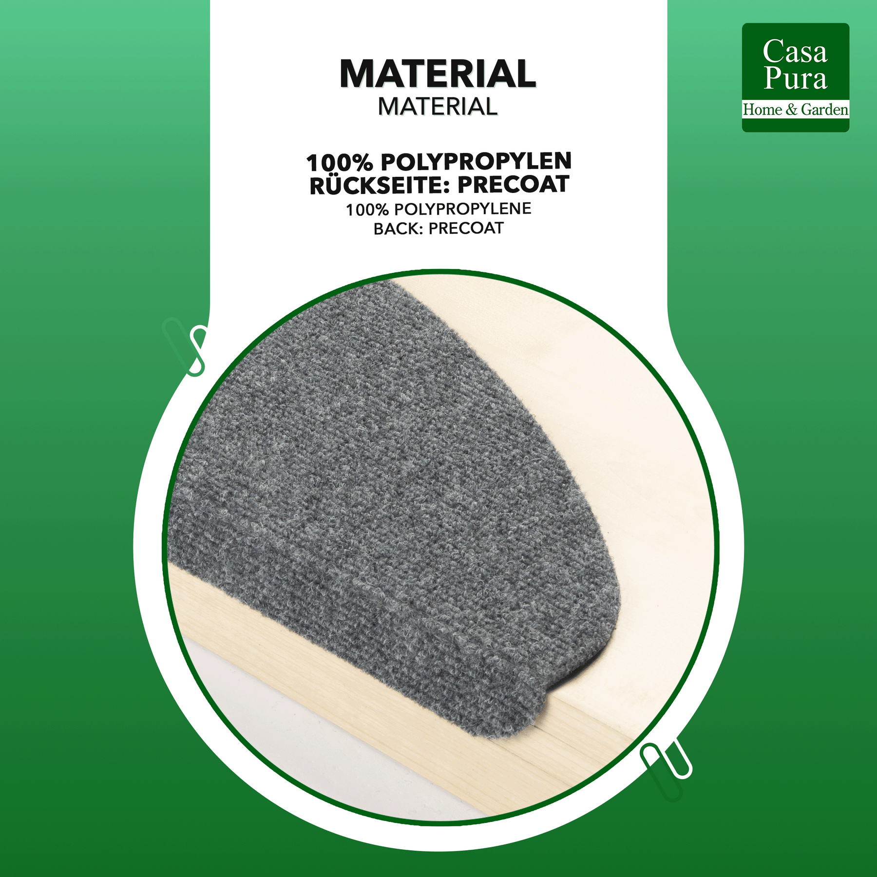Die Stufenmatten „Leipzig“ sind ein günstiger Treppenschutz aus Textilfaser. Die ruhigen Farben der Treppenmatten passen sich dem Design jeden Wohnraumes an, ohne sich in den Vordergrund zu drängen. Die Stufenmatten zum günstigen Preis bestehen aus der hoch belastbaren Kunstfaser Polypropylen und besitzen infolgedessen eine sehr robuste Struktur.