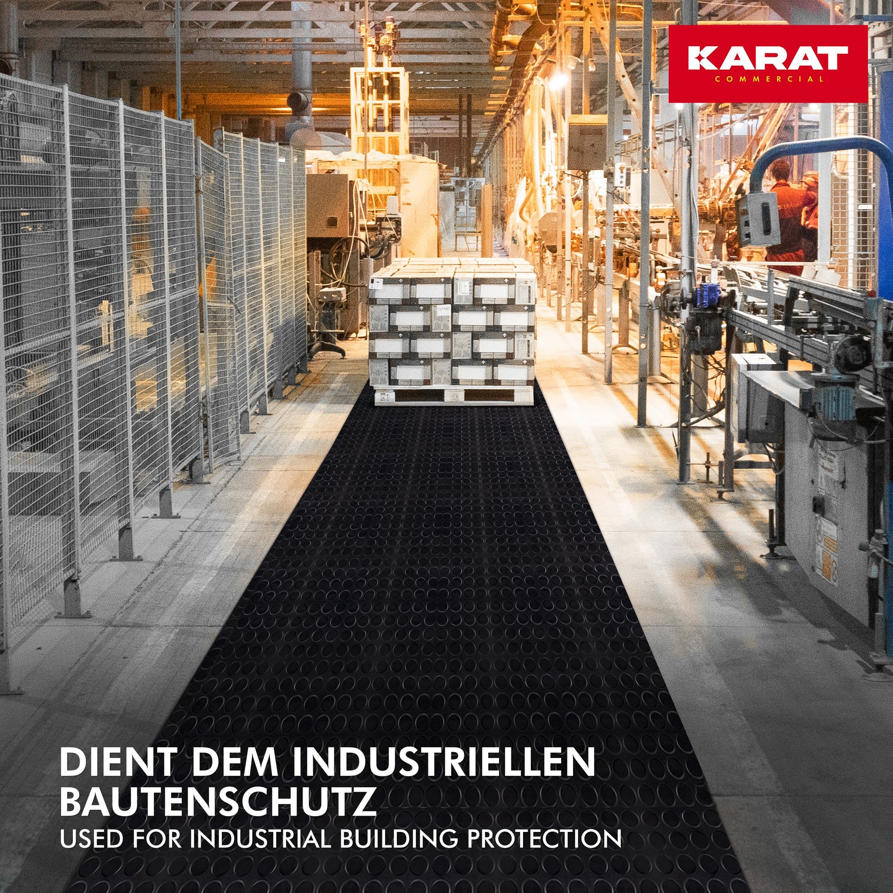 Mit der Noppenmatte als Zuschnitt in 3 verschiedenen Breiten (120 cm und 150 cm) erhalten Sie eine vielseitig einsetzbare Gummimatte, die grossflächig ausgelegt werden kann. Die runden Flachnoppen sorgen dank der grossen Auflagefläche für gute Haftung. Flüssigkeiten können sich aufgrund der Struktur nicht flächendeckend an der Oberfläche ansammeln, sondern fliessen ab.