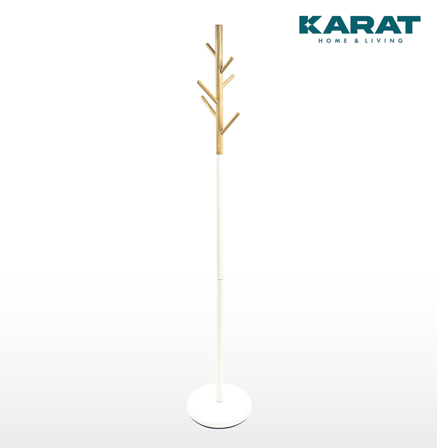 Dieser Garderobenständer zeigt sich als ideale Lösung, um das optimale Maß an Ordnung und Stil in Ihre Wohnung zu bringen. Mit der Kombination aus Holz und weiß lackiertem Stahl ist dieser Garderobenständer nicht nur äußerst funktional, sondern auch ein echter Blickfang, der perfekt zu jedem Wohnambiente passt.