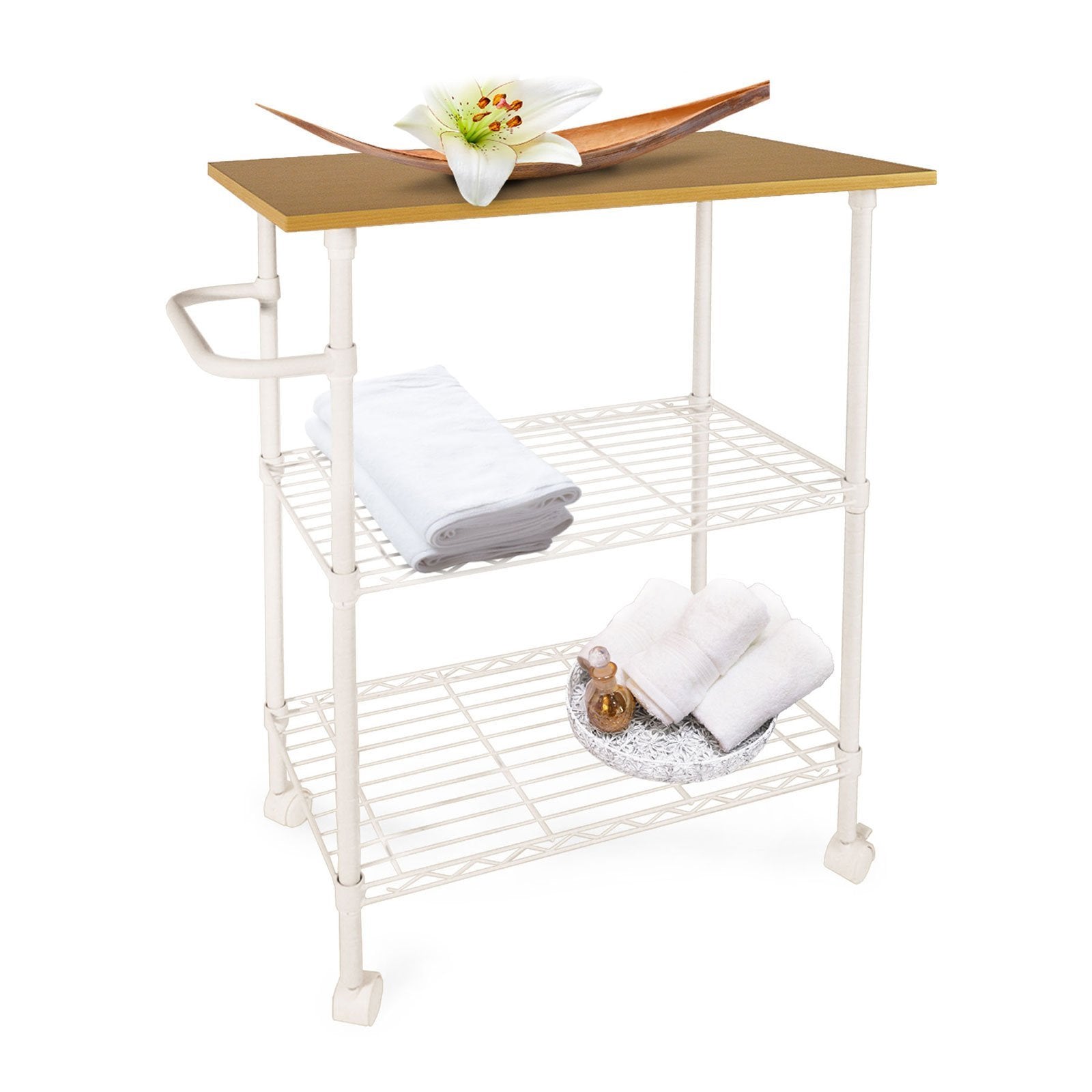 Vier Lenkrollen machen den Küchenwagen nicht nur mobil, sondern ausgesprochen wendig. Für ein hohes Mass an Stabilität sorgt ferner die robuste Metall-Konstruktion des Küchenregals. Die Gitterregalböden halten auch starker Belastung stand und können demzufolge voll beladen werden.