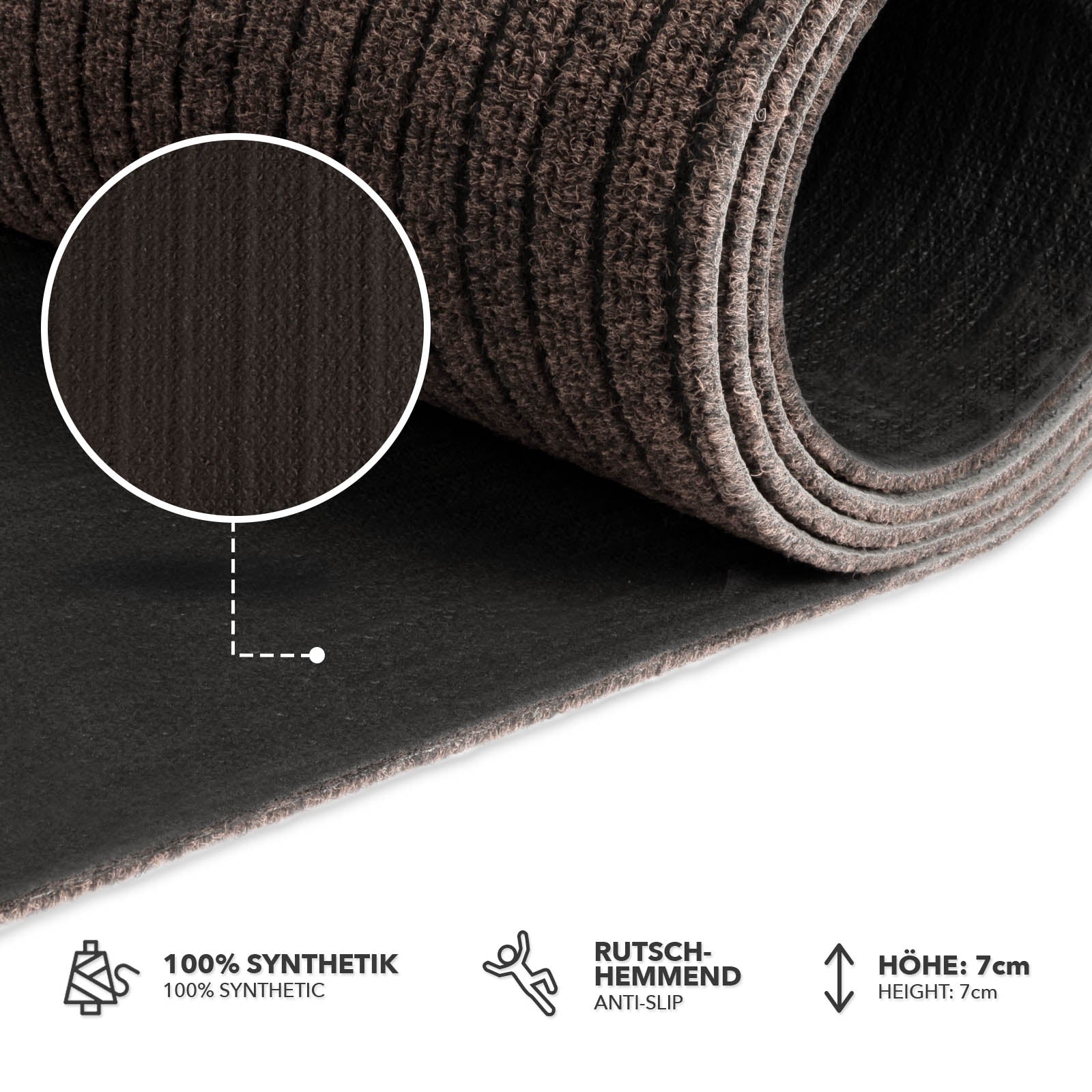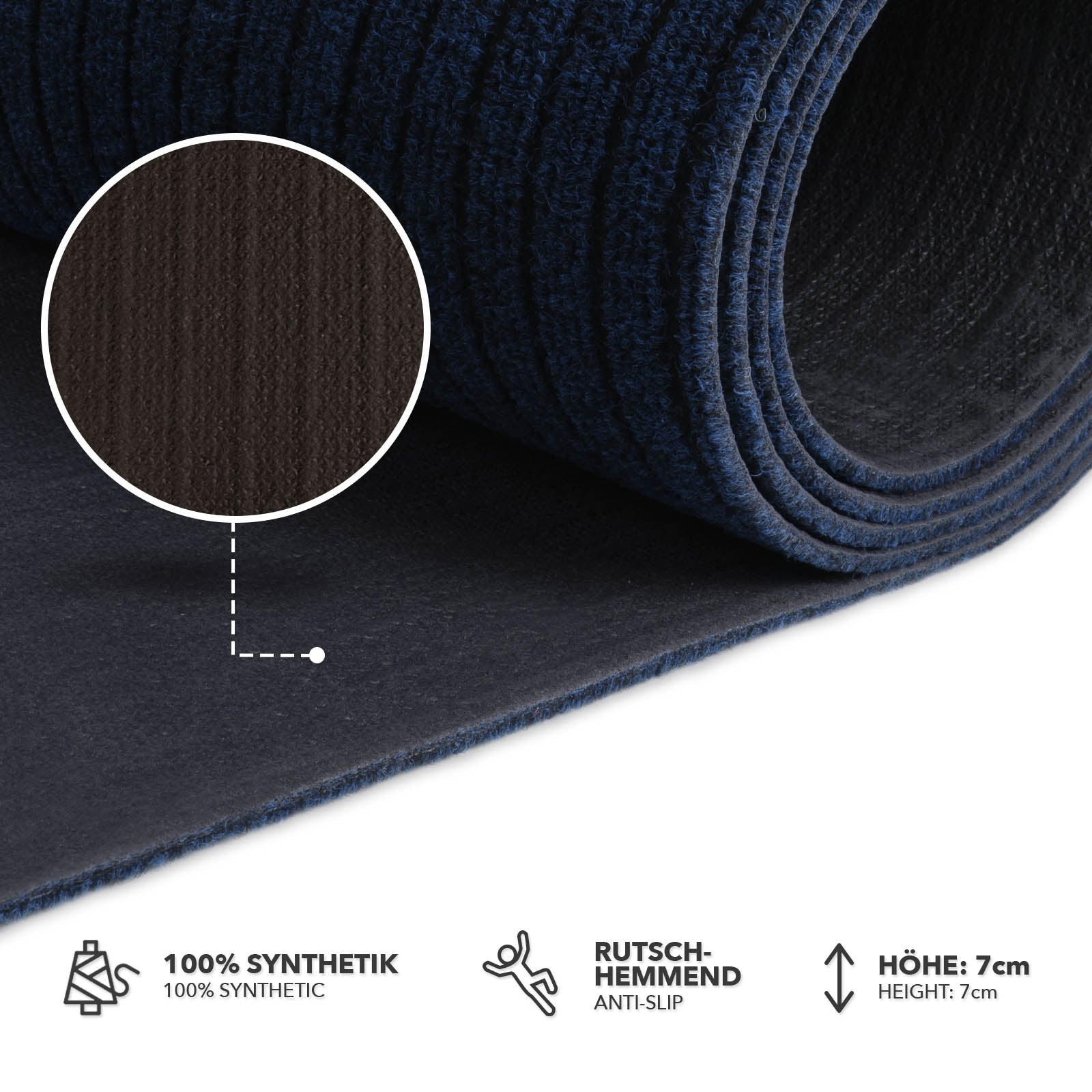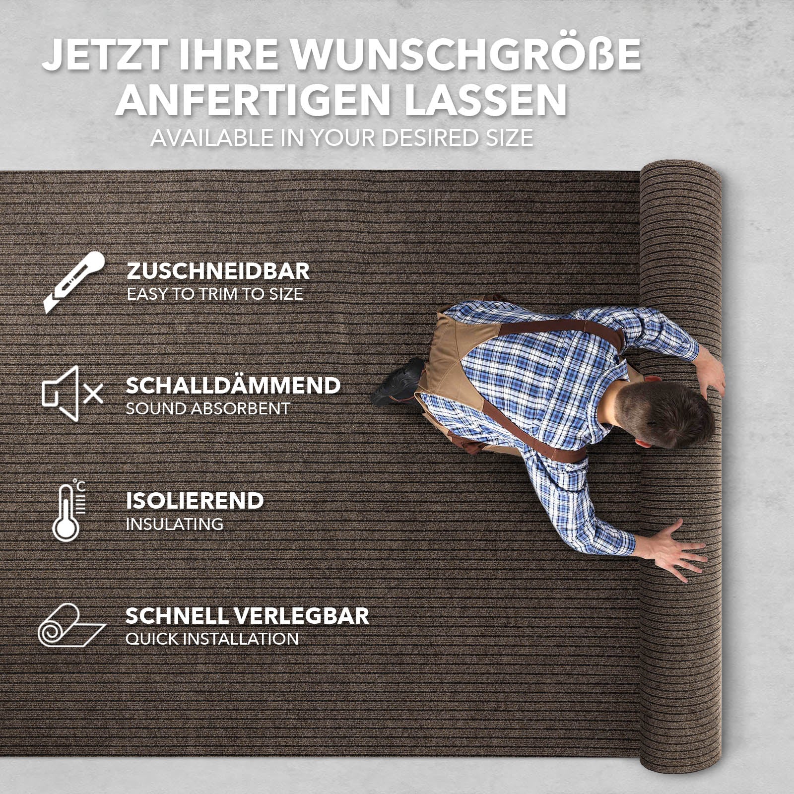 Erhältlich ist der strapazierfähige Teppichboden in den Breiten 100 cm und 200 cm. Hinsichtlich der Länge können Sie ganz bequem Ihre Wunschgröße zwischen 100 cm und 3000 cm wählen.
