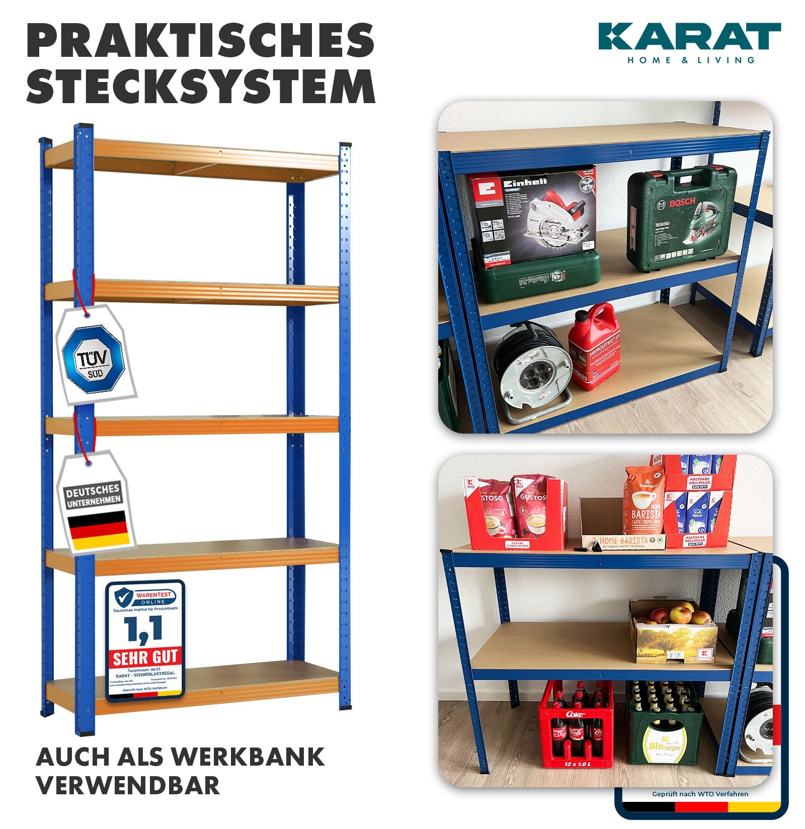 Dieses Metallregal ist ideal als Kellerregal, Lagerregal, Regal für die heimische Vorratskammer oder als Regal für die Garage. Durch das Zusammenspiel von Holz und Stahlblech können Sie das Metallregal auch perfekt für das Büro nutzen. Schwere Aktenordner sind ein Leichtes für das Steckregal.