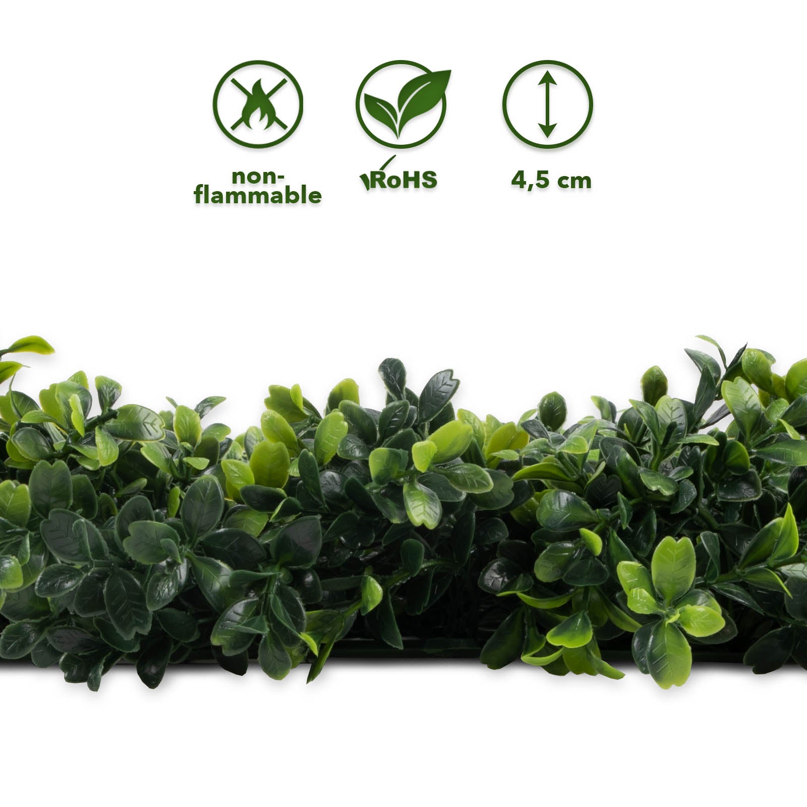 Künstliche Pflanzenwand Boxwood – Produkteigenschaften:
