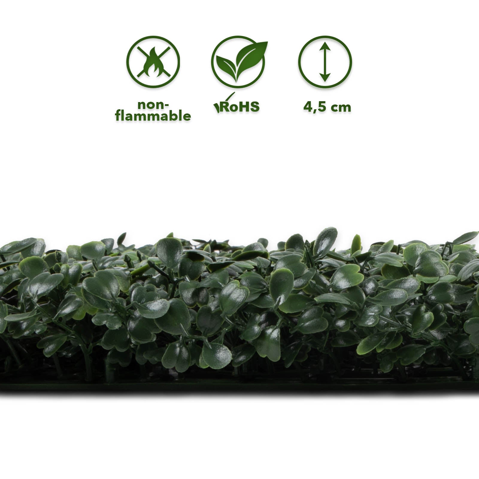 Künstliche Pflanzenwand Boxwood Dark-Green – Produkteigenschaften: