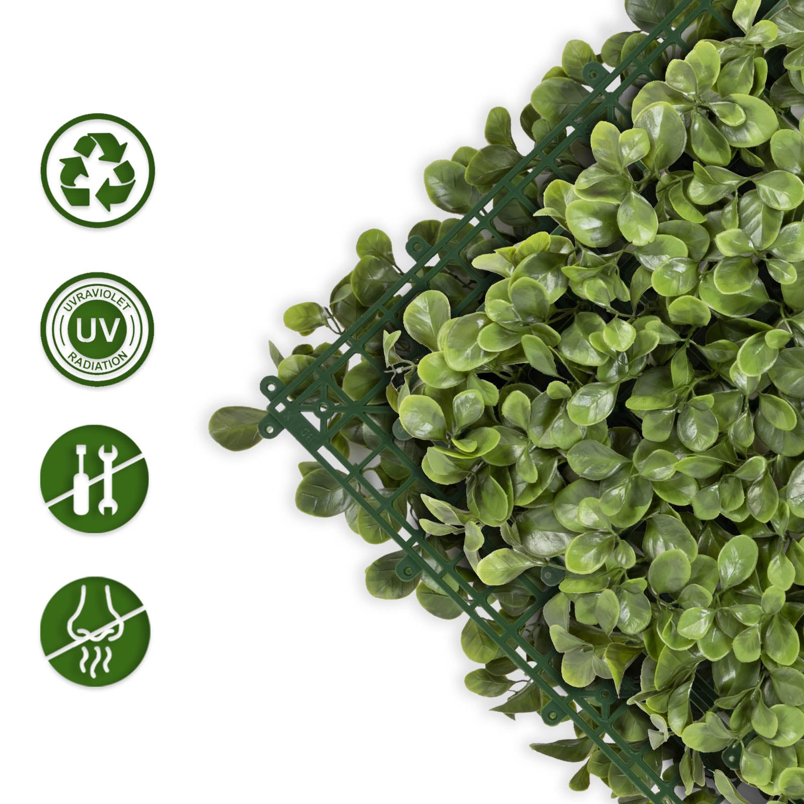 Auf ein einzelnes Design fokussieren? In vorliegendem Fall kein Muss! Diese Pflanzenwand ist mit weiteren Ausführungen beliebig kombinierbar, sodass Sie Ihr persönliches Fleckchen Grün nach eigenen Vorstellungen erschaffen können. Egal ob als Sichtschutz, individuelles Dekorationselement oder originelle Wandbegrünung – das optische Highlight wird Sie auch noch in vielen Jahren mit einem stets saftigen Grün begeistern.