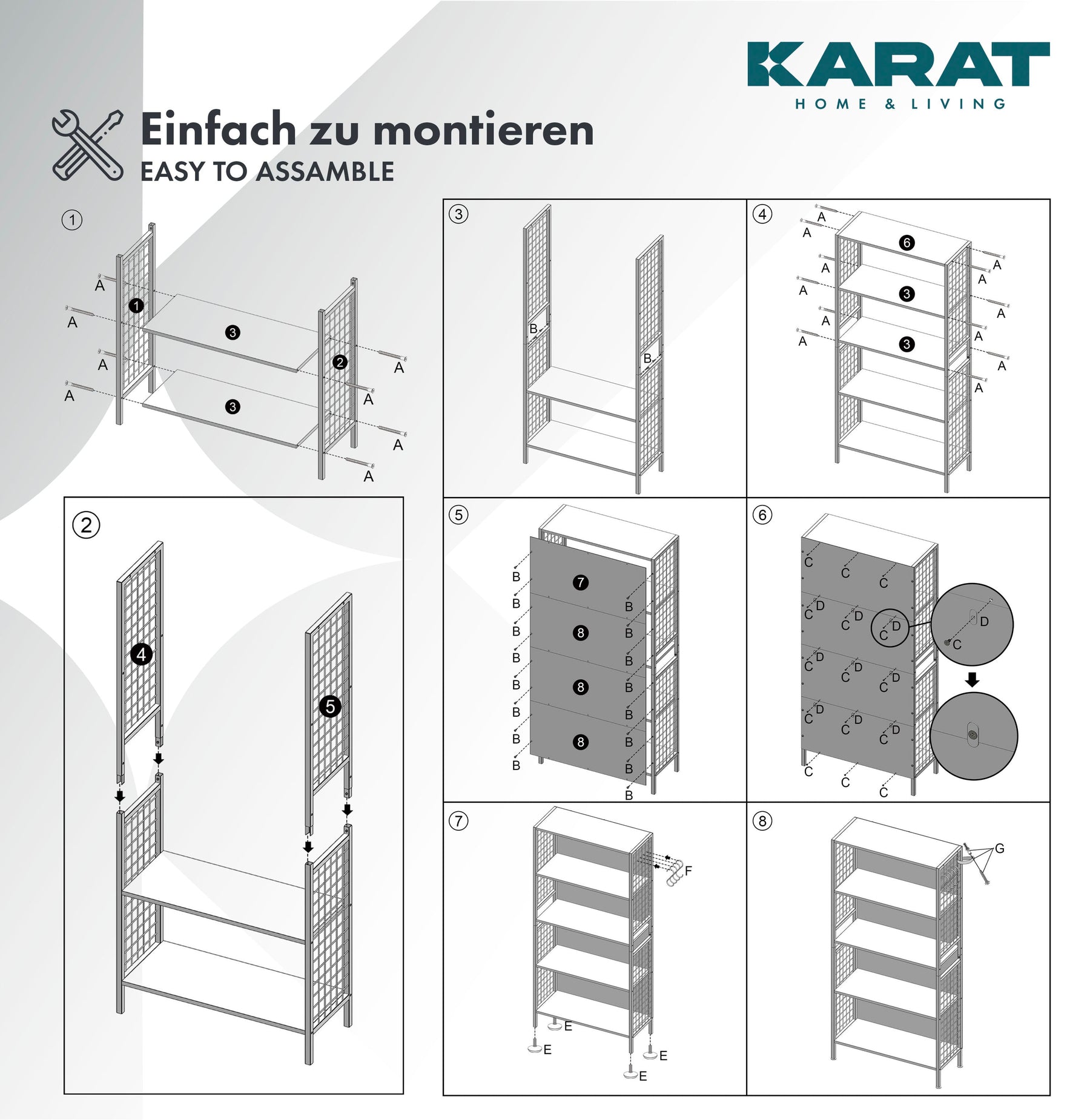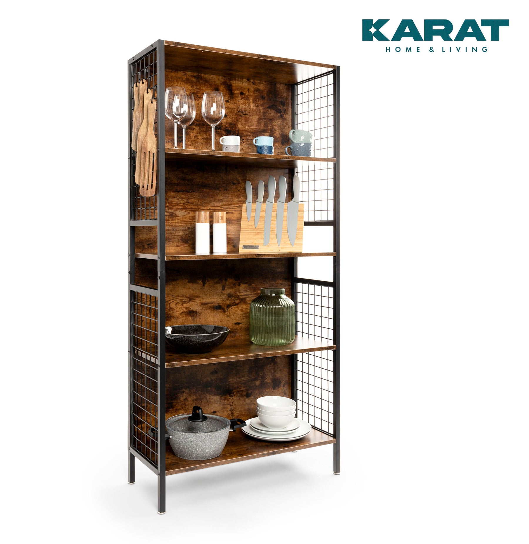 Unser Regal "Atlanta" - dieser Name steht für ein Stand- und Lagerregal, das sich als wahres Multitalent in Sachen Aufbewahrung für Küche, Wohnzimmer oder Flur entpuppt. Hergestellt aus mitteldichten Holzfaserplatten (mit Melaminharzbeschichtung) sowie robustem, pulverlackierten Stahl macht es in jedem Raum eine gute Figur. Dank einer stabilen Rückwand aus Holz + mit Gitter versehenen Seiten bleiben gelagerte Gegenstände, wie Küchenutensilien, Handtücher, Bücher etc. stets an Ort & Stelle. Funktionalität trifft auf stylisches, zeitloses Design. Was will man mehr?