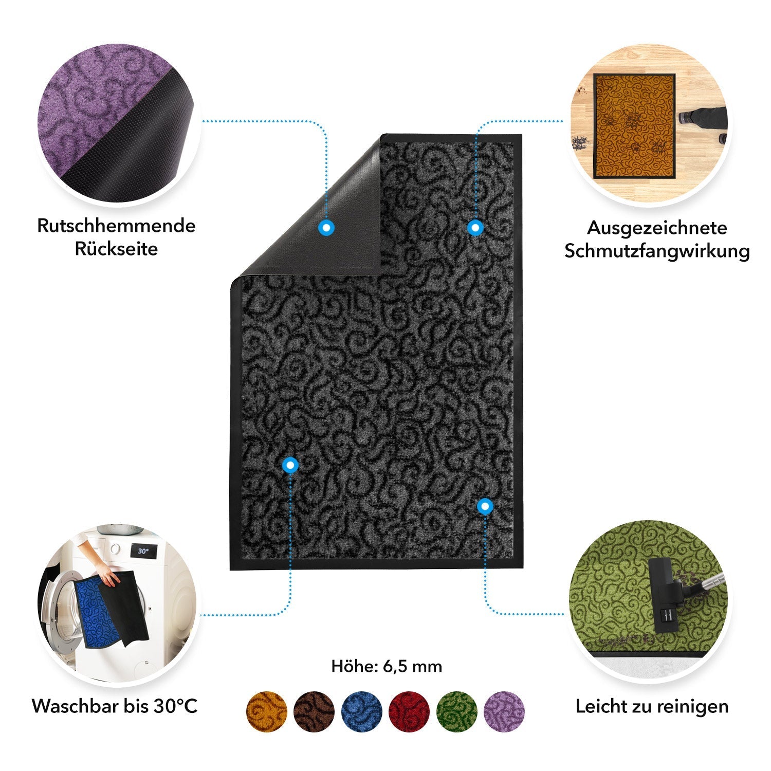 Erhältlich ist die Eingangsmatte „Brasil“ in vielen Farben und Grössen. Für eine individuelle Ausstattung des Eingangsbereichs ist die Schmutzfangmatte als massgefertigter Zuschnitt erhältlich. Darüber hinaus zeigt sich die Türmatte überaus pflegeleicht. Sie lässt sich nicht nur unproblematisch absaugen, sondern bei Bedarf auch in der Waschmaschine bei 30° C waschen.