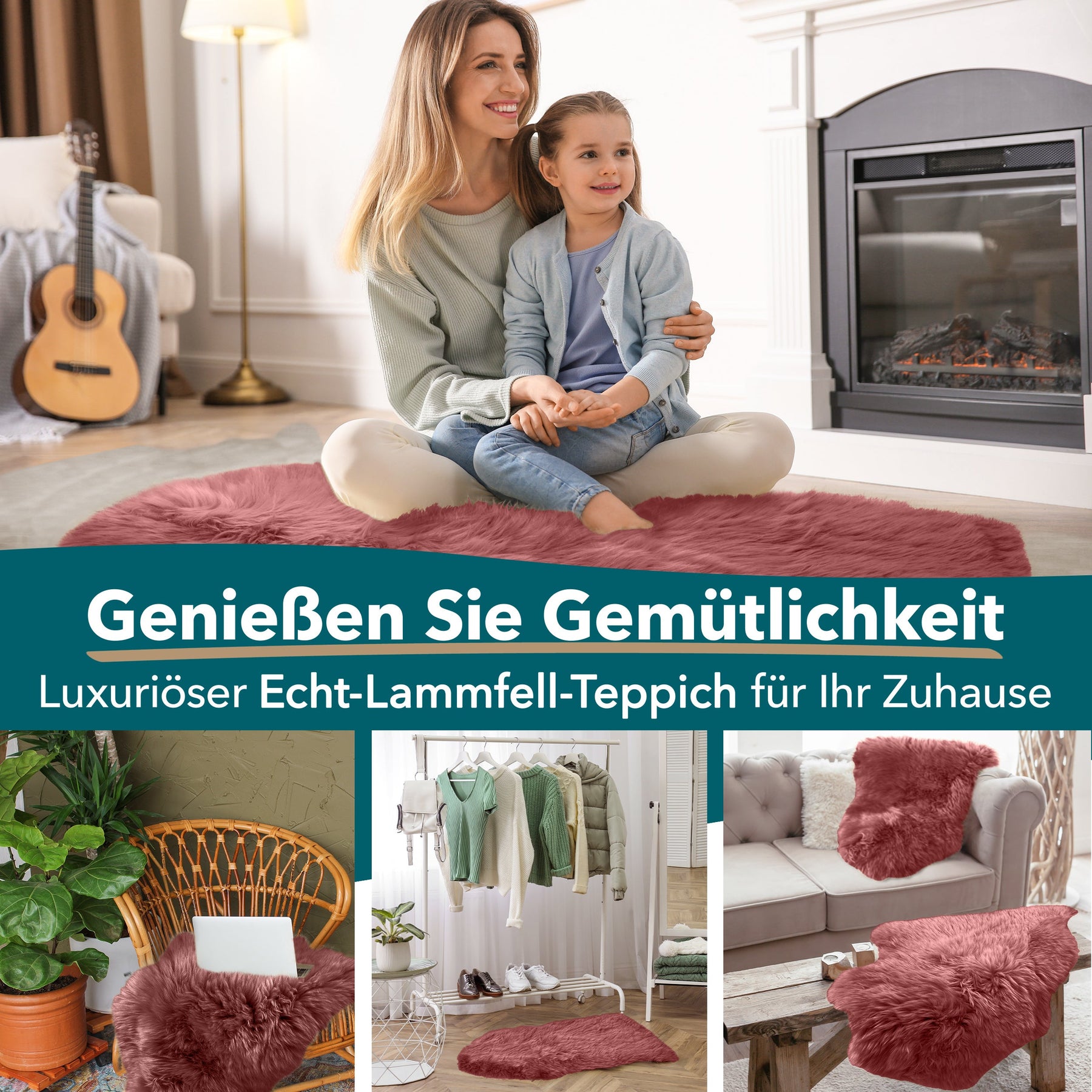 - Als Teppich, Dekoration (Stuhl, Sessel, Sofa, Tisch, Wand)