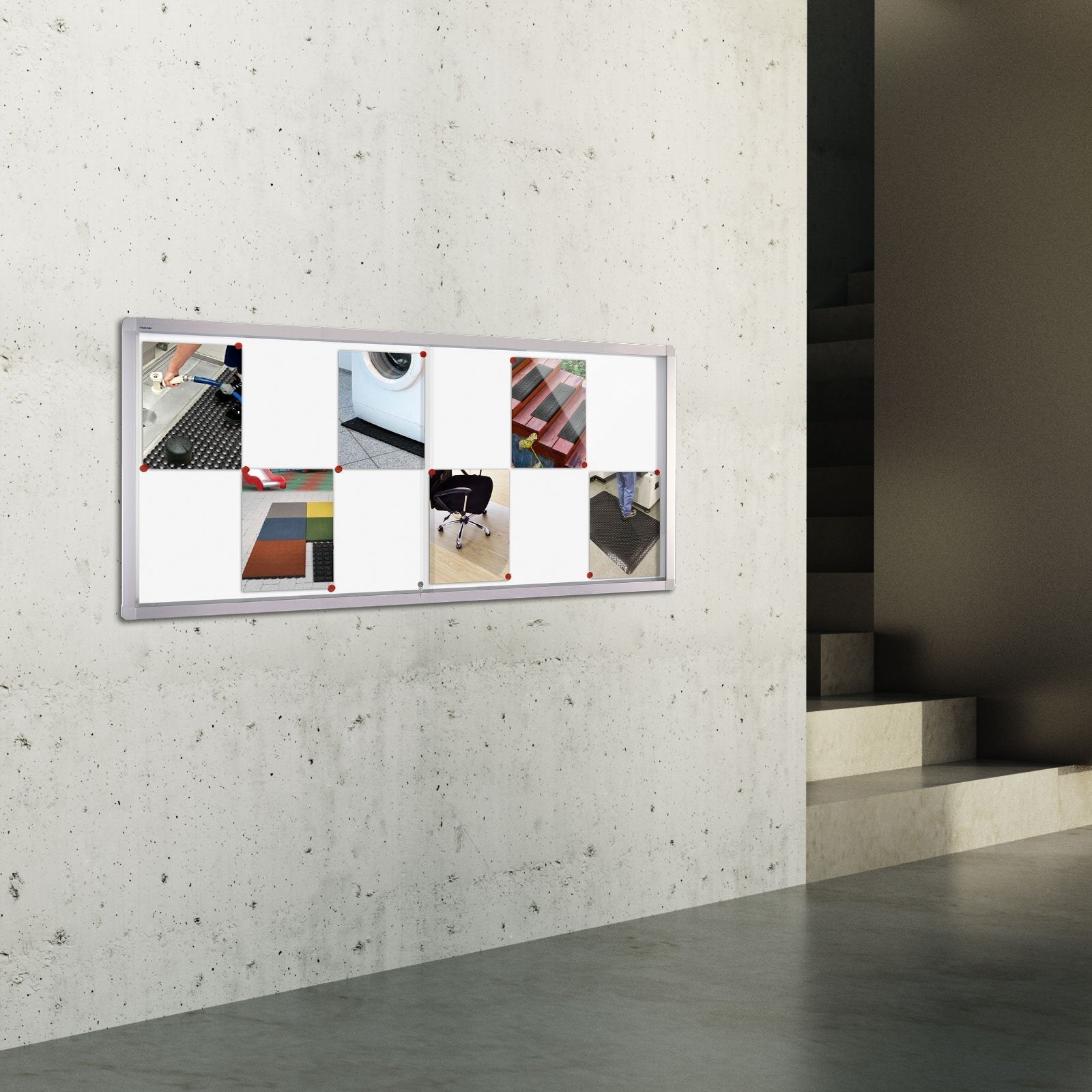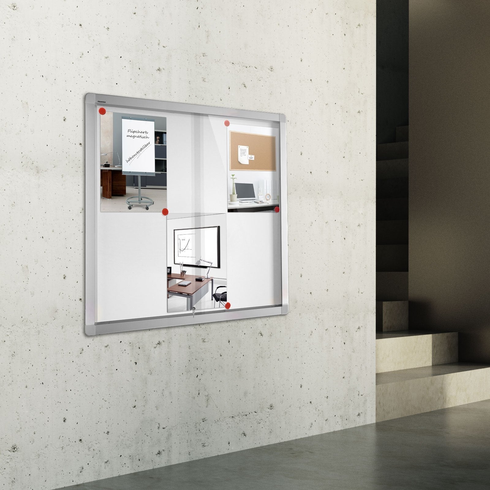 Innen-Schaukasten mit Glas-Schiebetüren und Metallrückwand