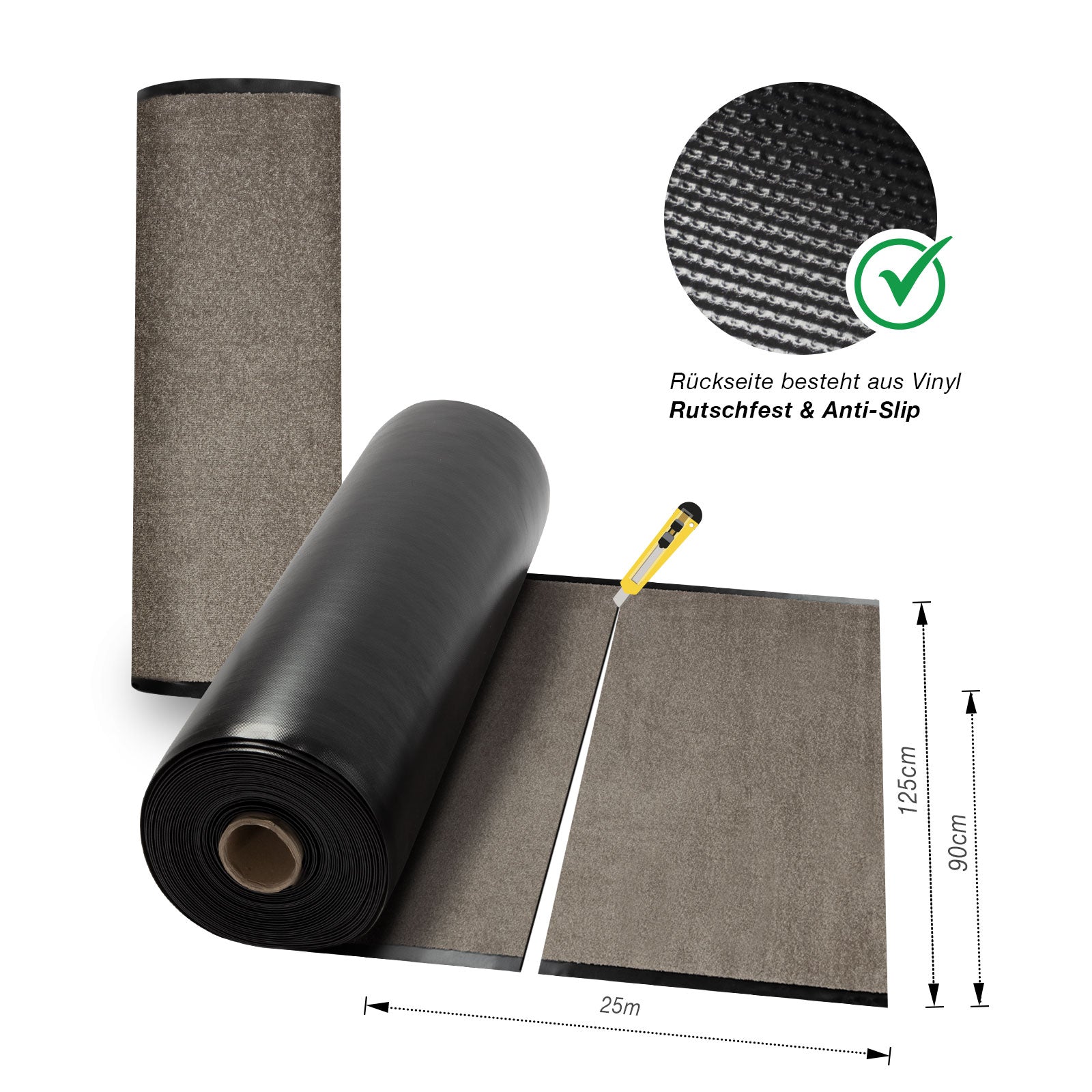 Der Rücken der Schmutzfangmatte ist mit rutschhemmendem Vinyl beschichtet und gewährleistet in Verbindung mit dem hohen Eigengewicht faltenfreies sowie sicheres Liegen auf dem Boden. Aufgrund der geringen Höhe von lediglich 7 mm kann die Schmutzmatte auch unter Türen gelegt werden und stellt beim Öffnen und Schliessen kein Hindernis dar. Die Sauberlaufmatte ist im Alltag ausgesprochen pflegeleicht. Es genügt regelmässiges Absaugen.
