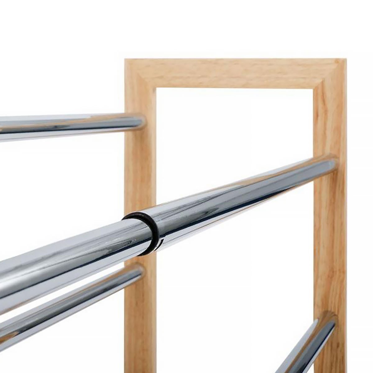 Das Schuhregal „Allen“ aus Holz und verchromten Stahl schafft endlich Ordnung und bringt Ihre Schuhe platzsparend unter. Darüber hinaus hat es ein minimalistisches Design, das für eine ansprechende Optik sorgt und zudem auch noch funktional ist. Die verchromten Stäbe lassen sich stufenlos einstellen und sorgen so dafür, dass das Regal in jede Nische passt für die es vorgesehen wurde (von 63 cm bis 118 cm).