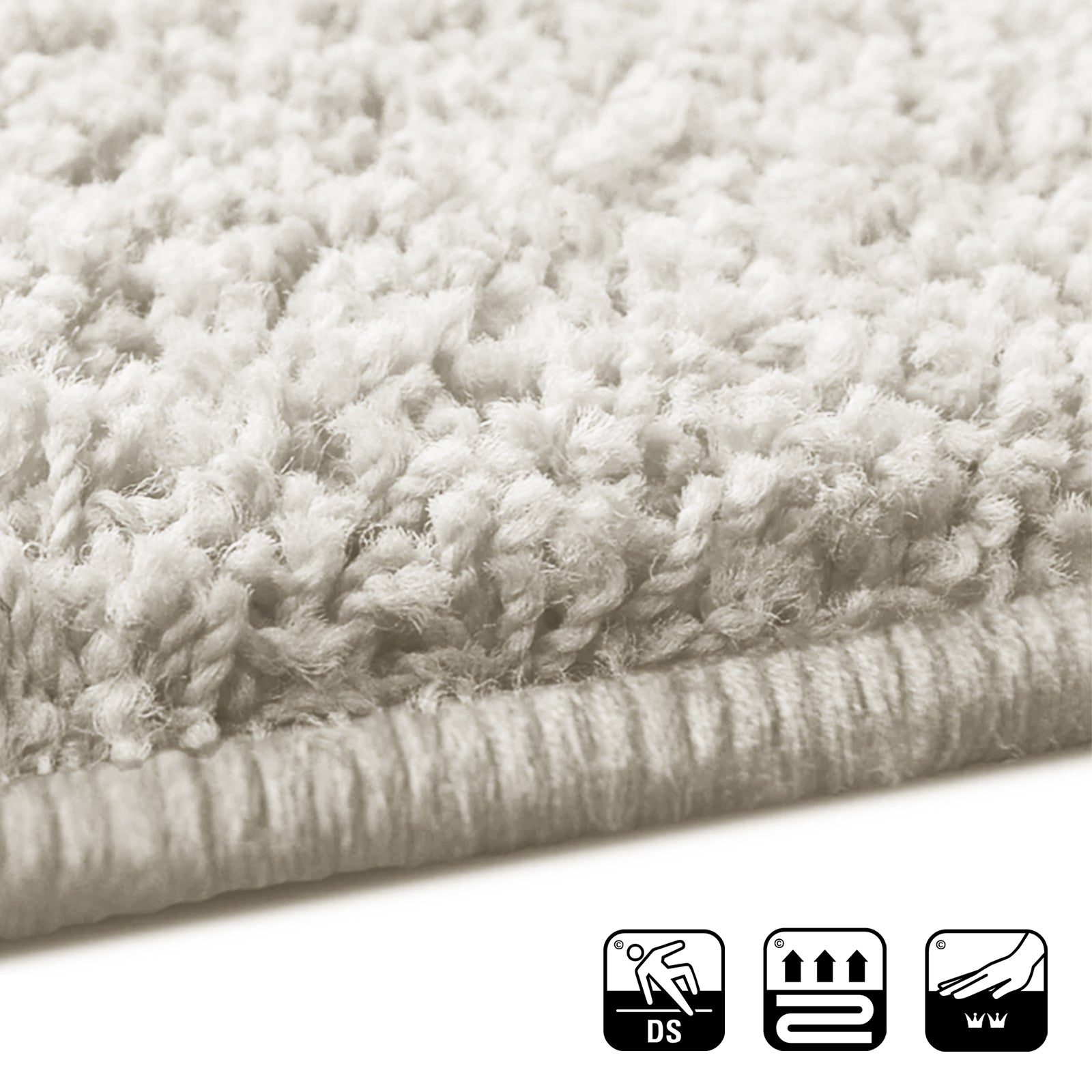 Der rutschfeste Action-Back-Rücken fixiert die Shaggy-Bettumrandung an Ort und Stelle und verhindert das Verrutschen der einzelnen Läufer. Der flauschige, kräuselige Hochflor aus robuster und pflegeleichter Polypropylenfaser sorgt für Gemütlichkeit und ein frisches Ambiente im Schlafzimmer. Die Ränder sind jeweils mit einer hochwertigen Umkettelung versehen und bewahren die Bettumrandung vor dem Ausfransen.