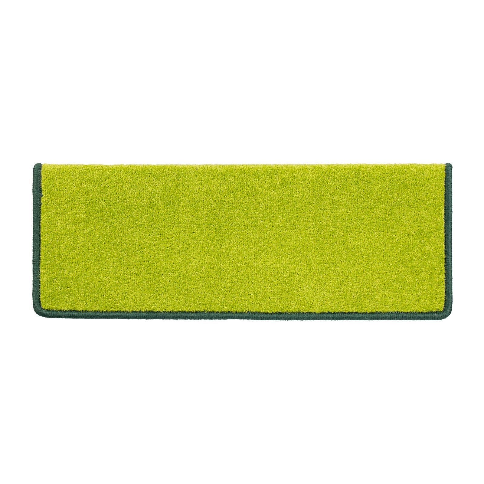 Gefertigt in Deutschland und von erstklassiger Verarbeitungsqualität, zeigt sich die Stufenmatte unempfindlich und ist somit ein idealer Stufenschutz in Wohnbereichen. Stabilität und höchstmöglichen Halt – auch auf abgerundeten Holzstufen – stellt der stabile Winkel in Verbindung mit dem 40 mm breiten Klebestreifen auf der Unterseite der Stufenmatten sicher. Für einen ordentlichen Abschluss und Schutz der Kanten ist hingegen die farblich passende Umkettelung an den Rändern der Stufenmatten verantwortlich. Und damit grosse genauso wie kleine Stufen mit perfekt passenden Treppenschonern versehen werden können, sind die Velours-Stufenmatten sowohl in halbrunder als auch in rechteckiger Ausfertigung erhältlich.