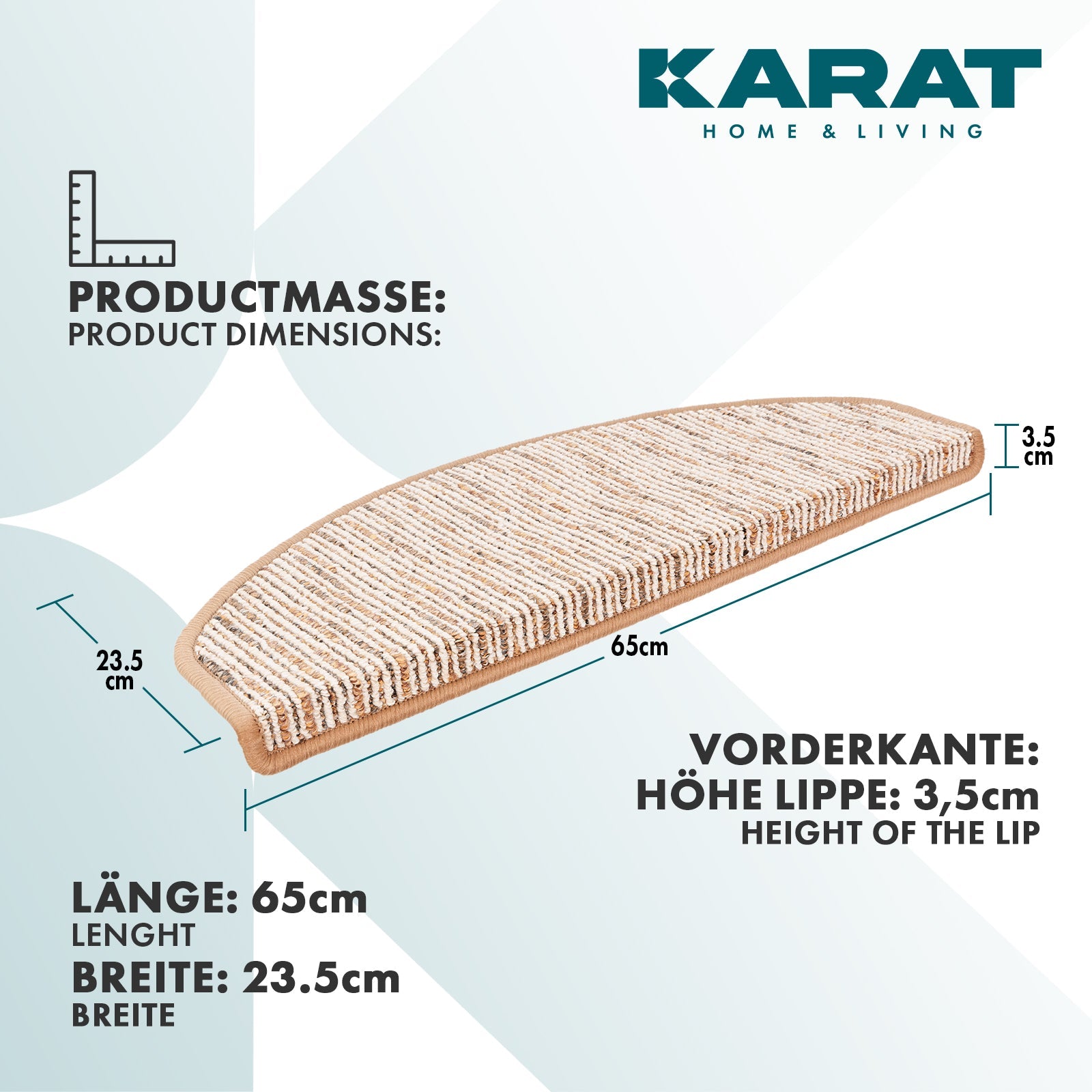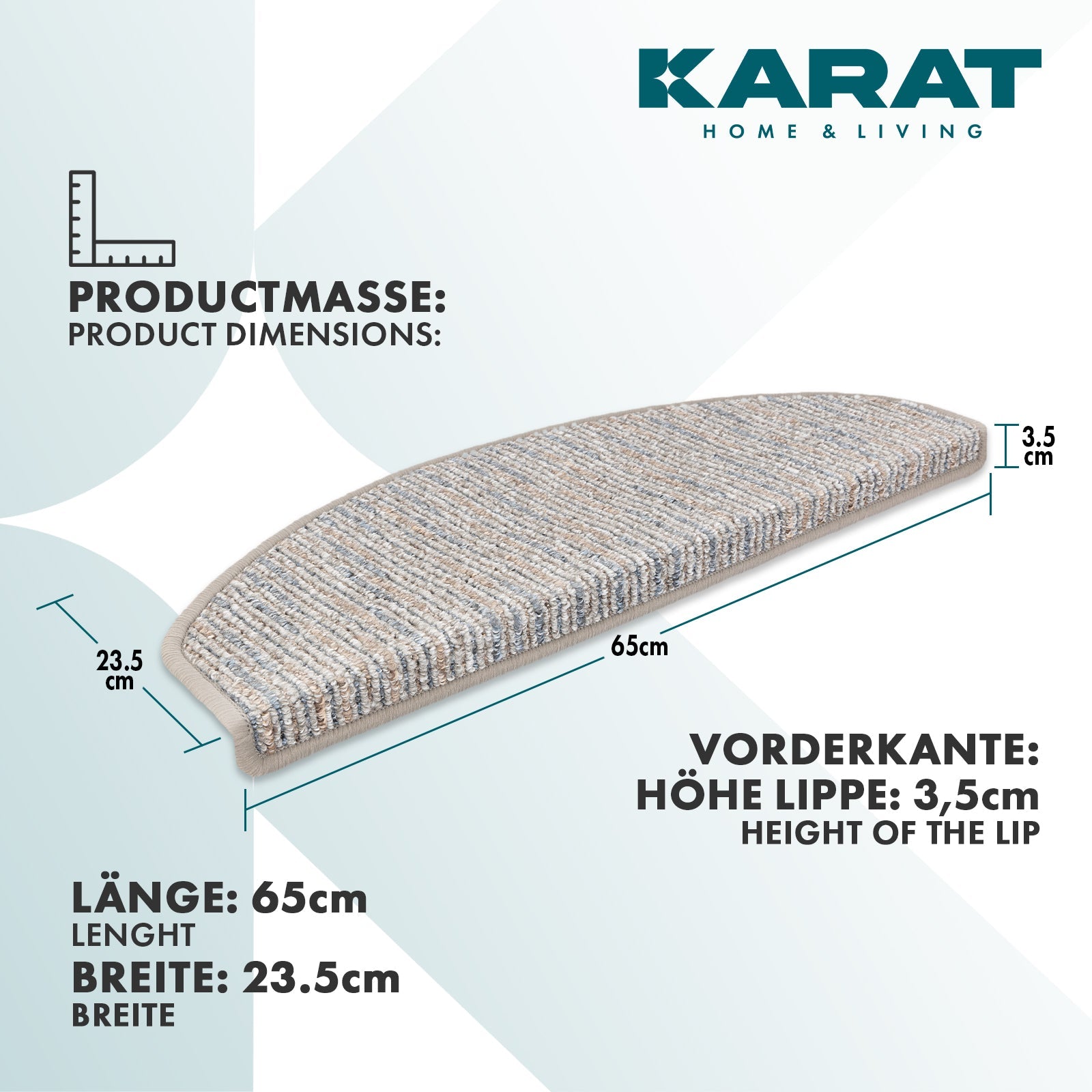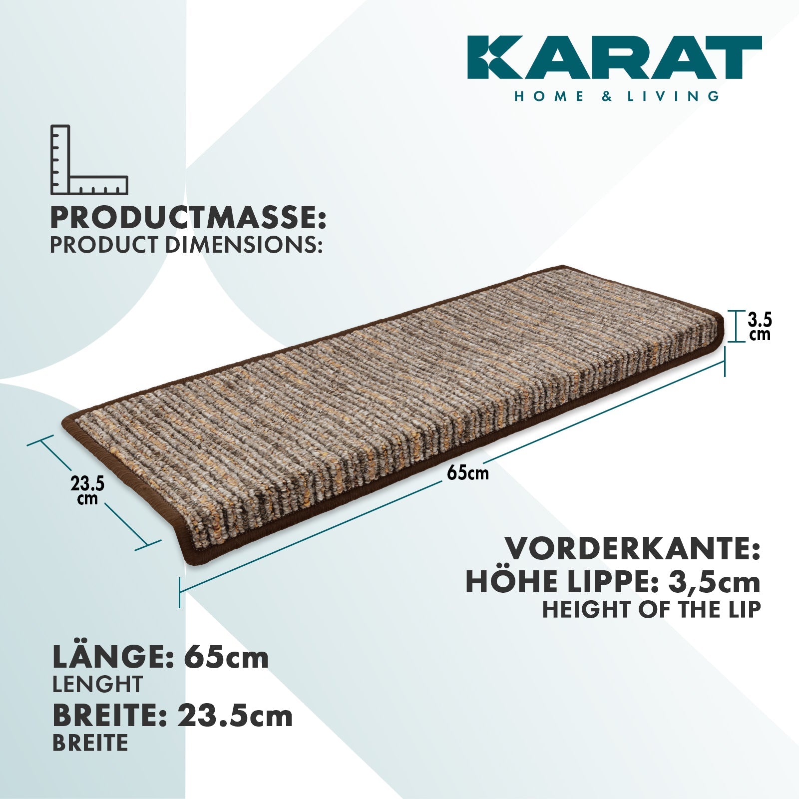 Mit einer großzügigen Größe von 23,5 x 65 cm ist die Stufenmatte Geneva perfekt dimensioniert, um Treppenstufen zuverlässig zu bedecken. Die Lippenhöhe von ca. 3,5 cm sorgt dafür, dass die Matte sicher auf den Stufen sitzt und einen effektiven Schutz bietet. Die Gesamtstärke von etwa 5 mm gewährleistet dabei ein angenehmes Laufgefühl, während das Gesamtgewicht von 1245 g/m² für Stabilität und Rutschfestigkeit sorgt.
