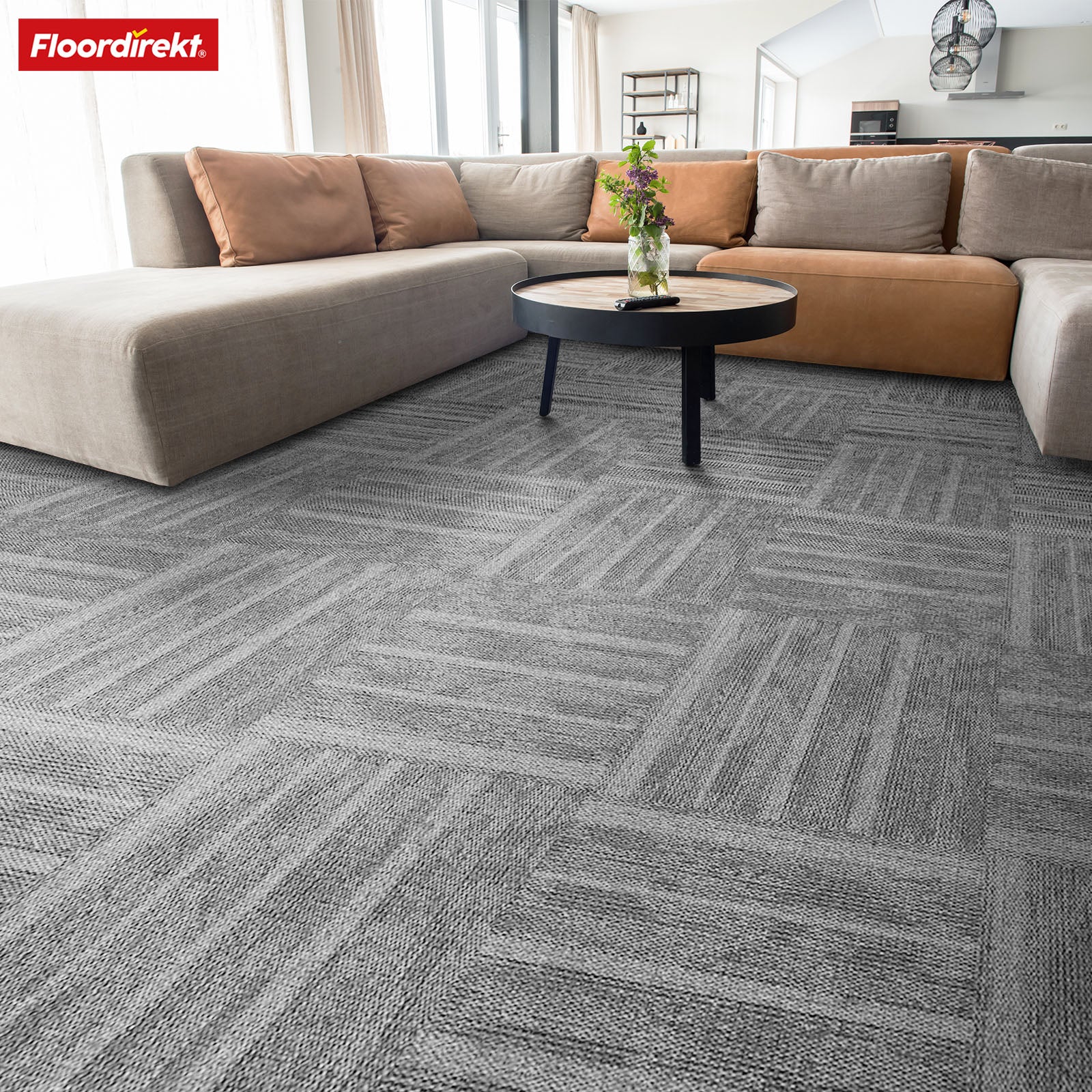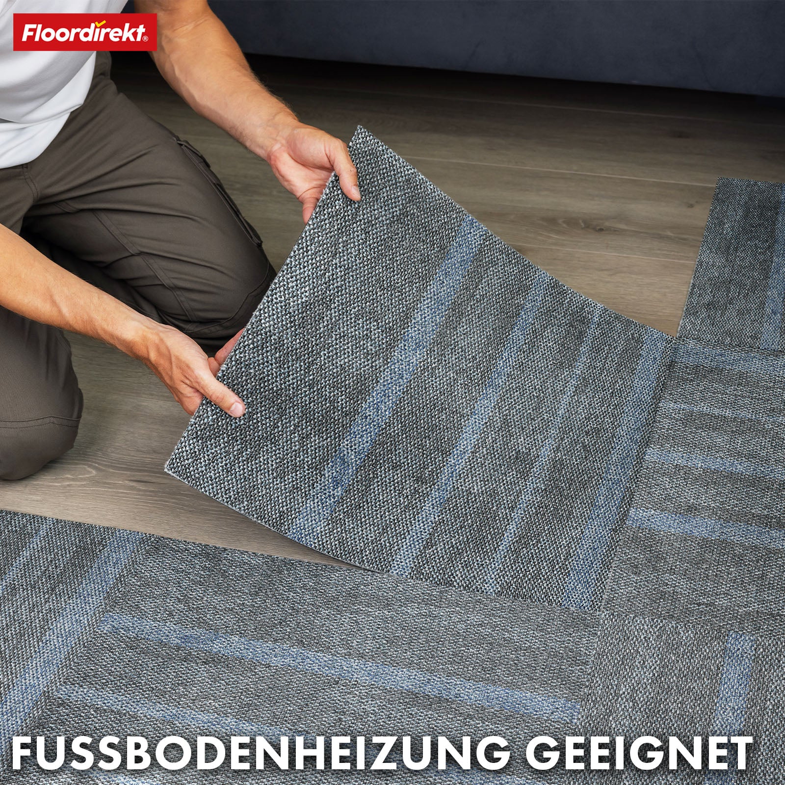 - Die Teppichfliesen „Zürich“ sind selbstliegend und schnell zu verlegen