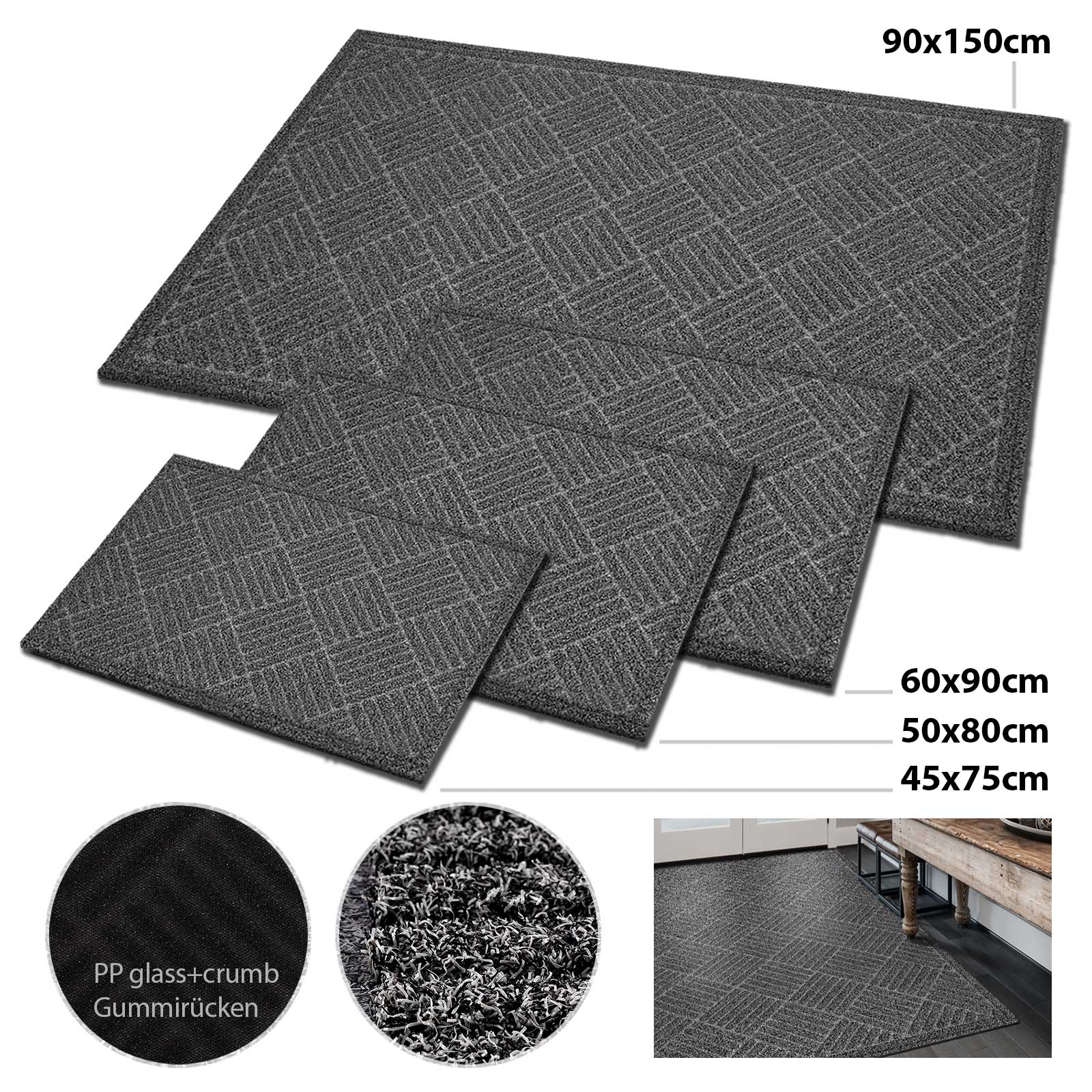 - Grössen (cm): 45x75, 50x80, 60x90, 90x150