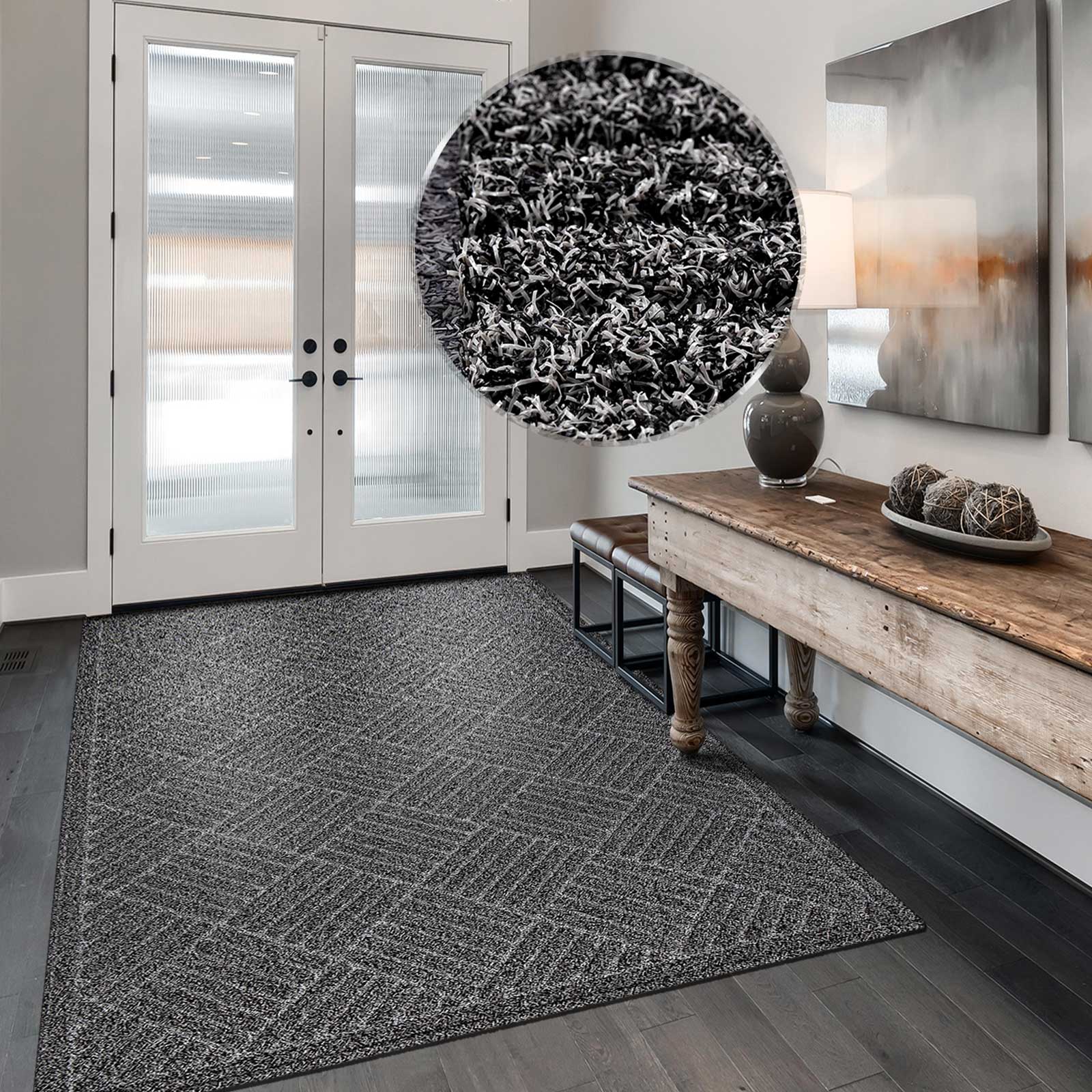Zum Schutz vor Verrutschen ist die Rückseite der robusten Tür-Matte mit einer rutschhemmenden Gummischicht ausgerüstet – so wird die Sicherheit beim Betreten der Eingangsmatte erhöht, da diese an der gewünschten Position liegen bleibt.
