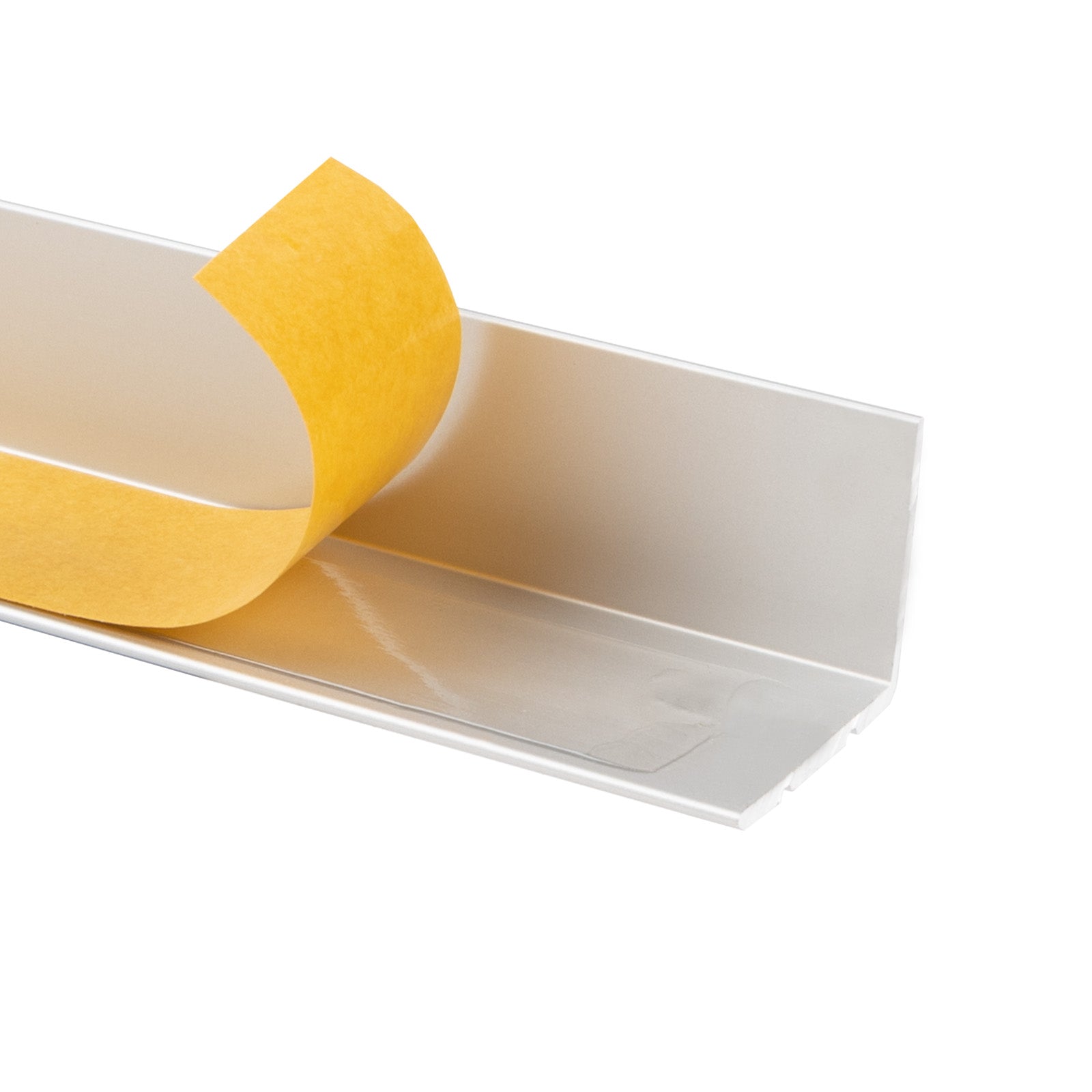 Alternativ kann die selbstklebende Variante des Profils auch mittels des an der Rückseite angebrachten Klebestreifens montiert werden. Stellen Sie hierfür sicher, dass der gewählte Untergrund glatt und sauber ist, und bringen Sie das Winkelprofil an der gewünschten Stelle an.