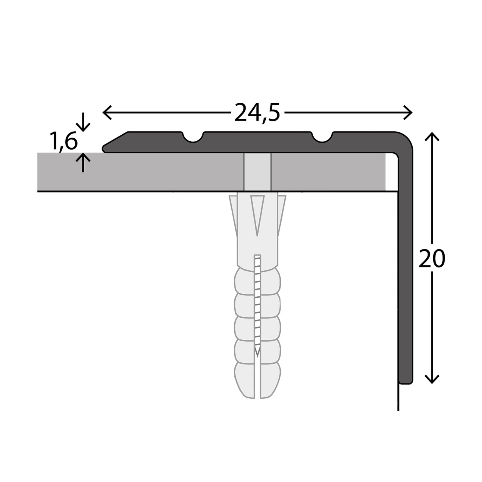 Winkelprofil | Für Treppenstufen & Absätze | Aluminium | 24,5 x 20 mm